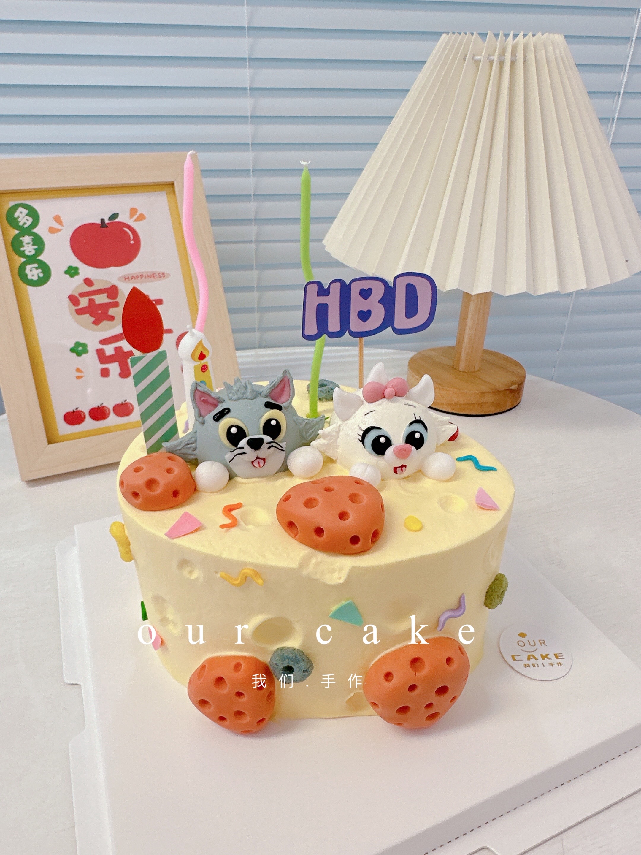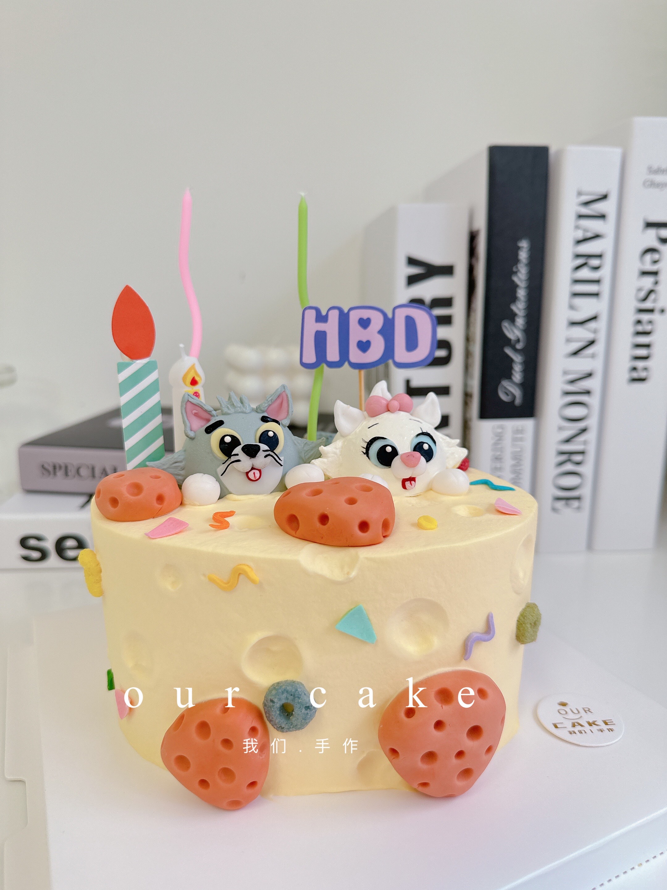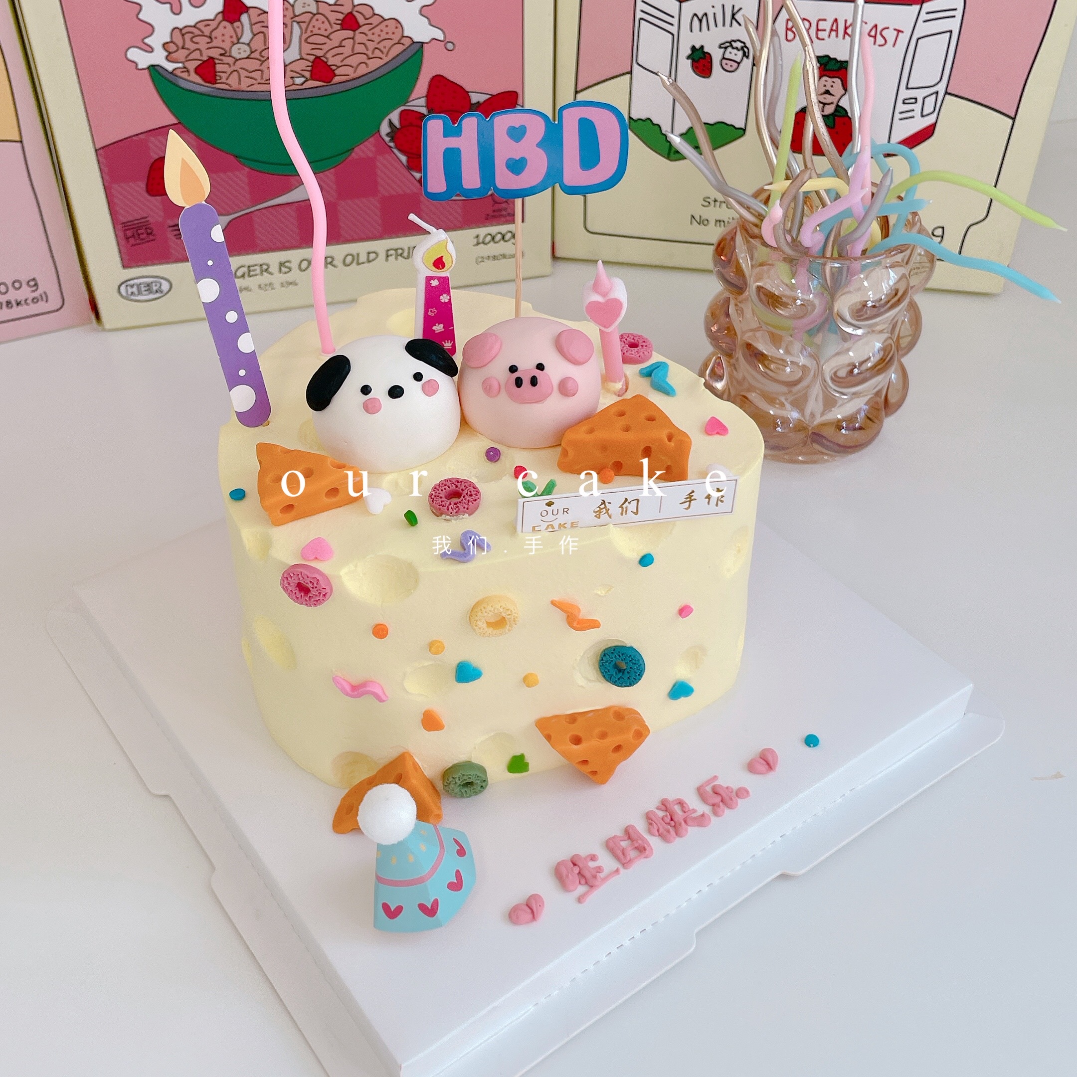 星星人蜡烛蝴蝶结卡通蛋糕-低糖处理无添加