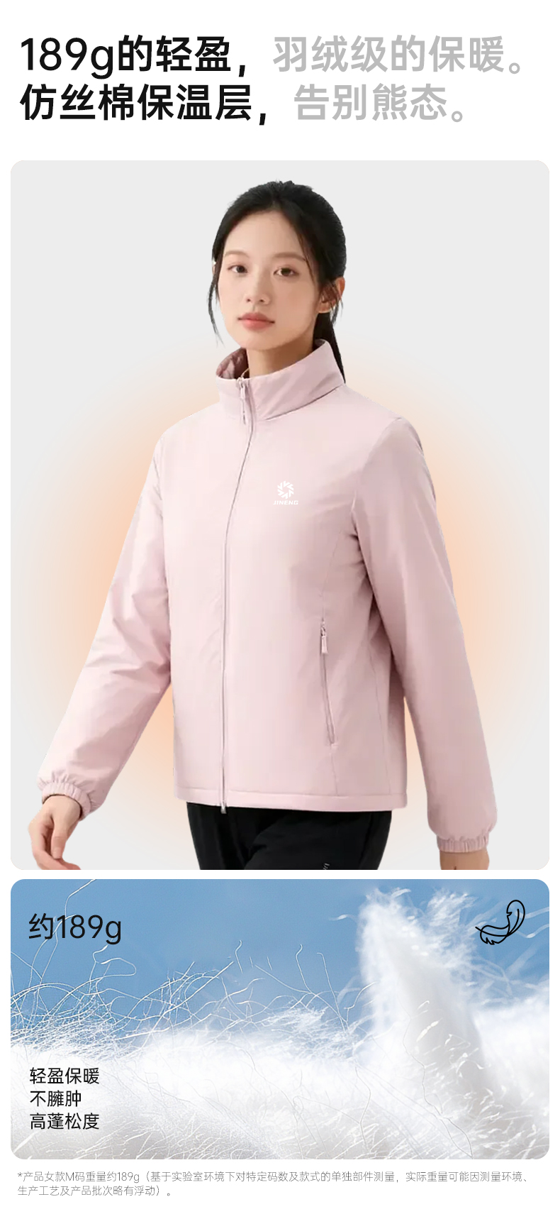 【积能】秋冬新款户外单层保暖轻量化运动棉服男女跑步立领健身外套