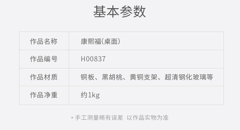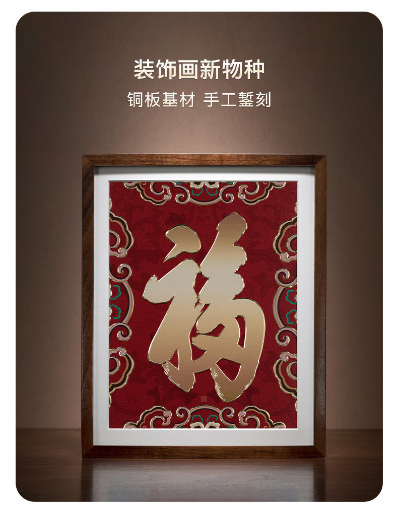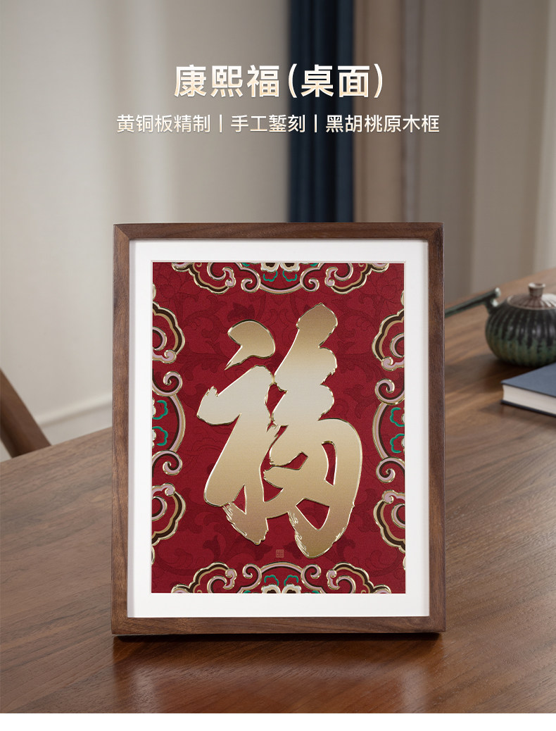 铜师傅 手工錾刻 铜雕画 《康熙福(桌面)》书房办公室装饰画