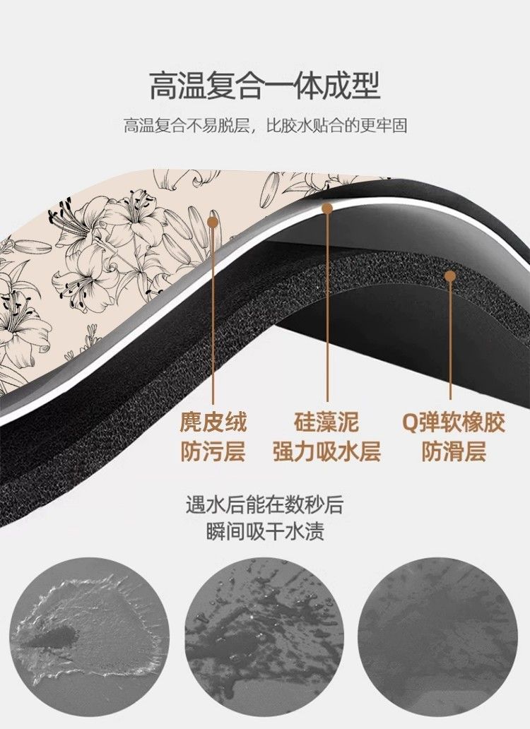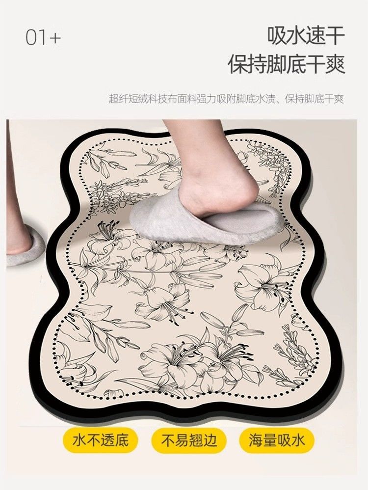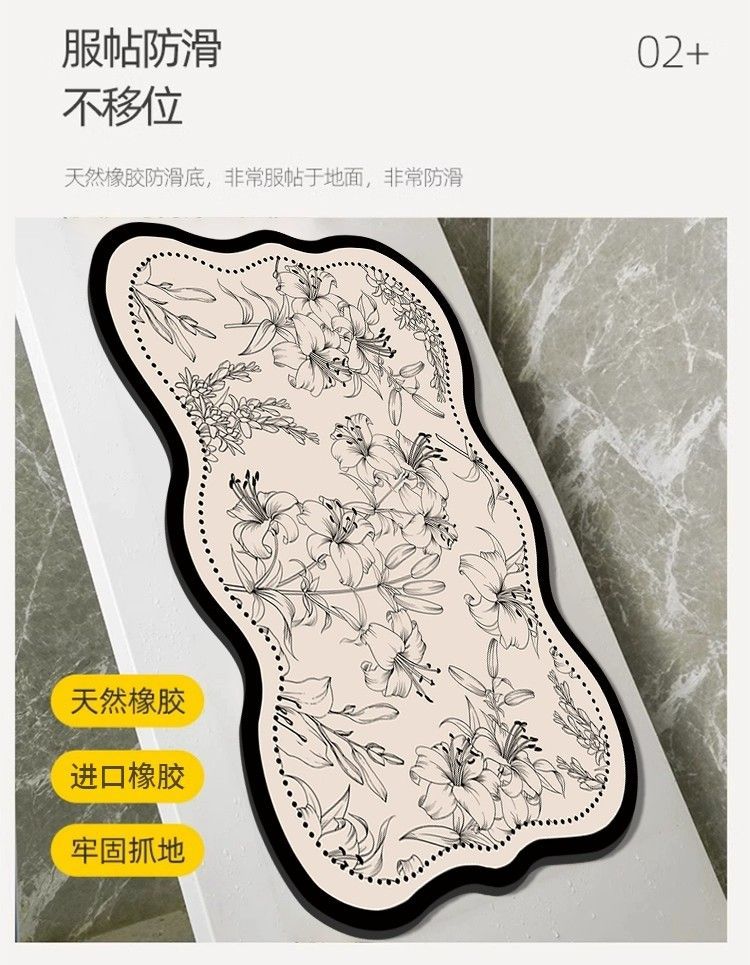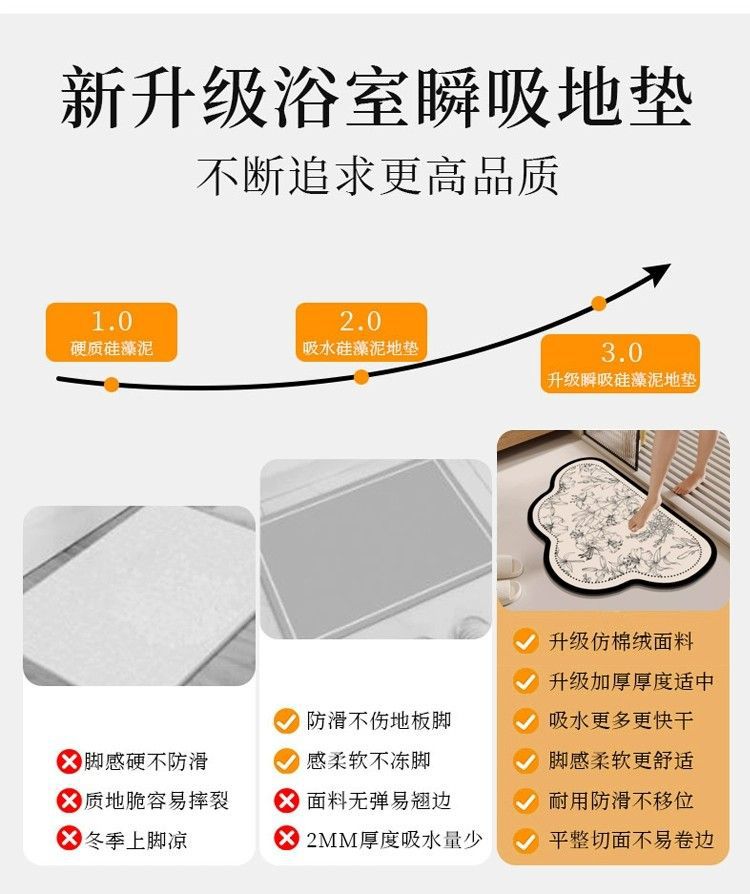 【新升级!高颜值瞬吸地垫!】硅藻泥地垫 浴室防滑垫软垫 轻奢卫生间门口脚垫 洗澡吸水垫