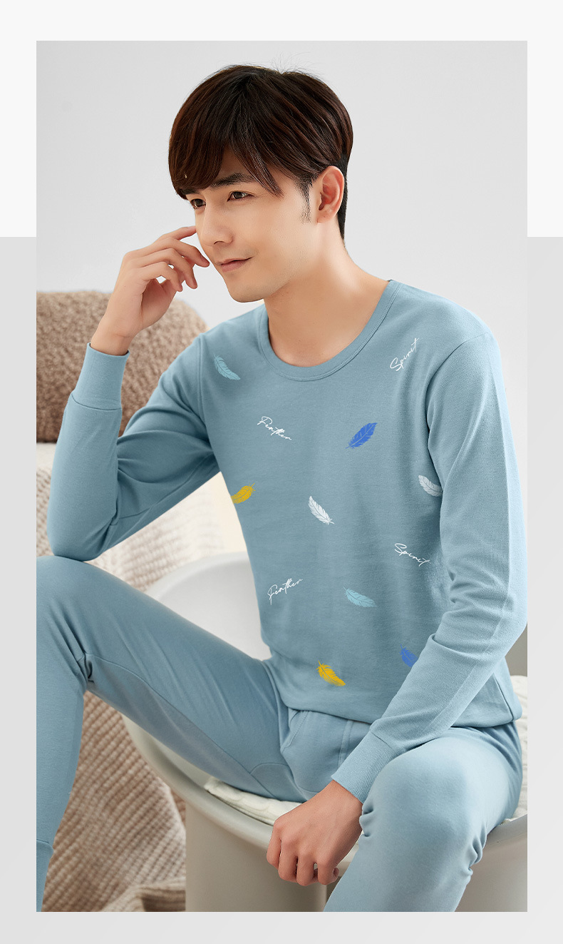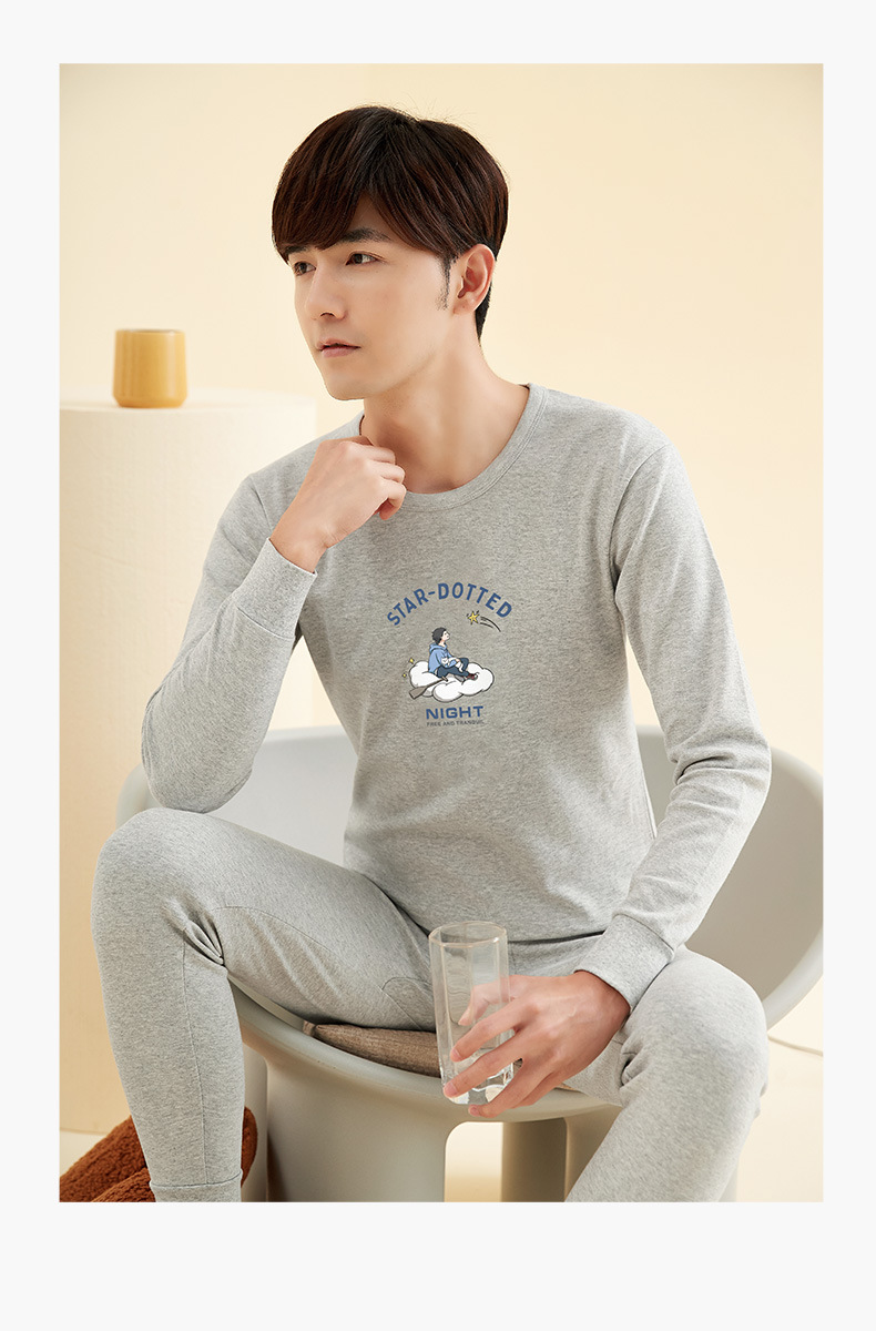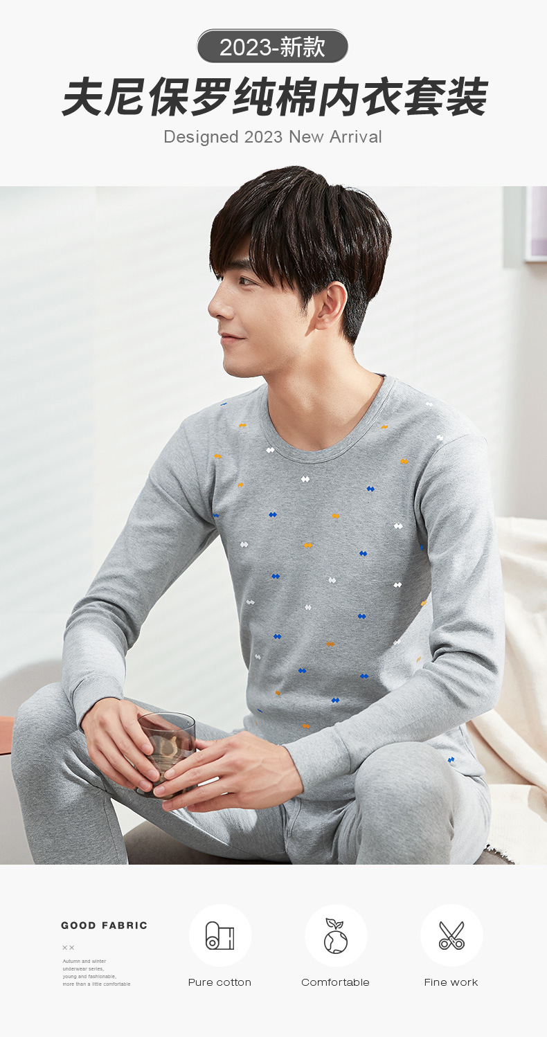 【秋冬必备保暖!】全棉衬衣衬裤套装,男士棉毛衫打底,薄款保暖内衣,青年纯棉秋衣秋裤。ry