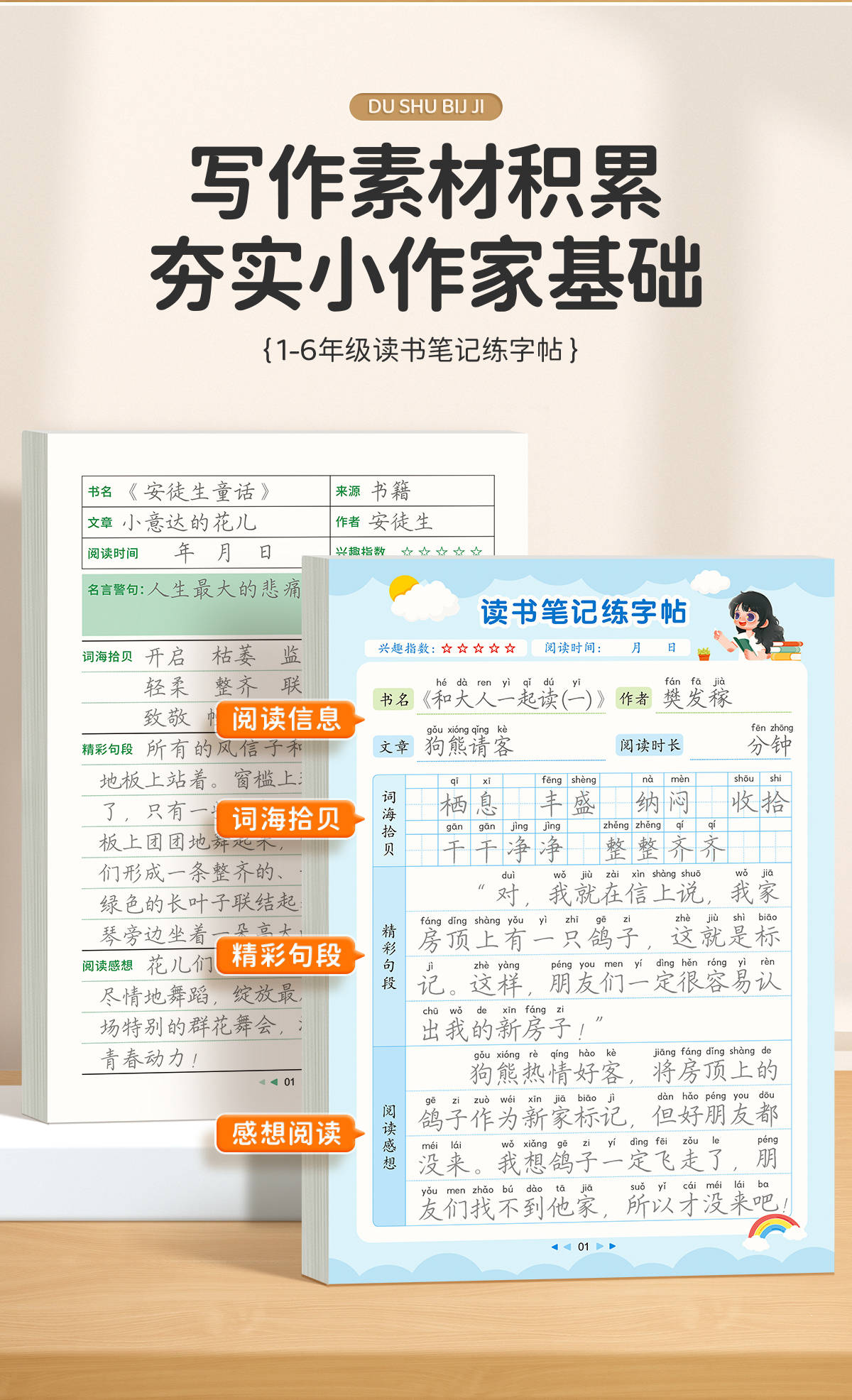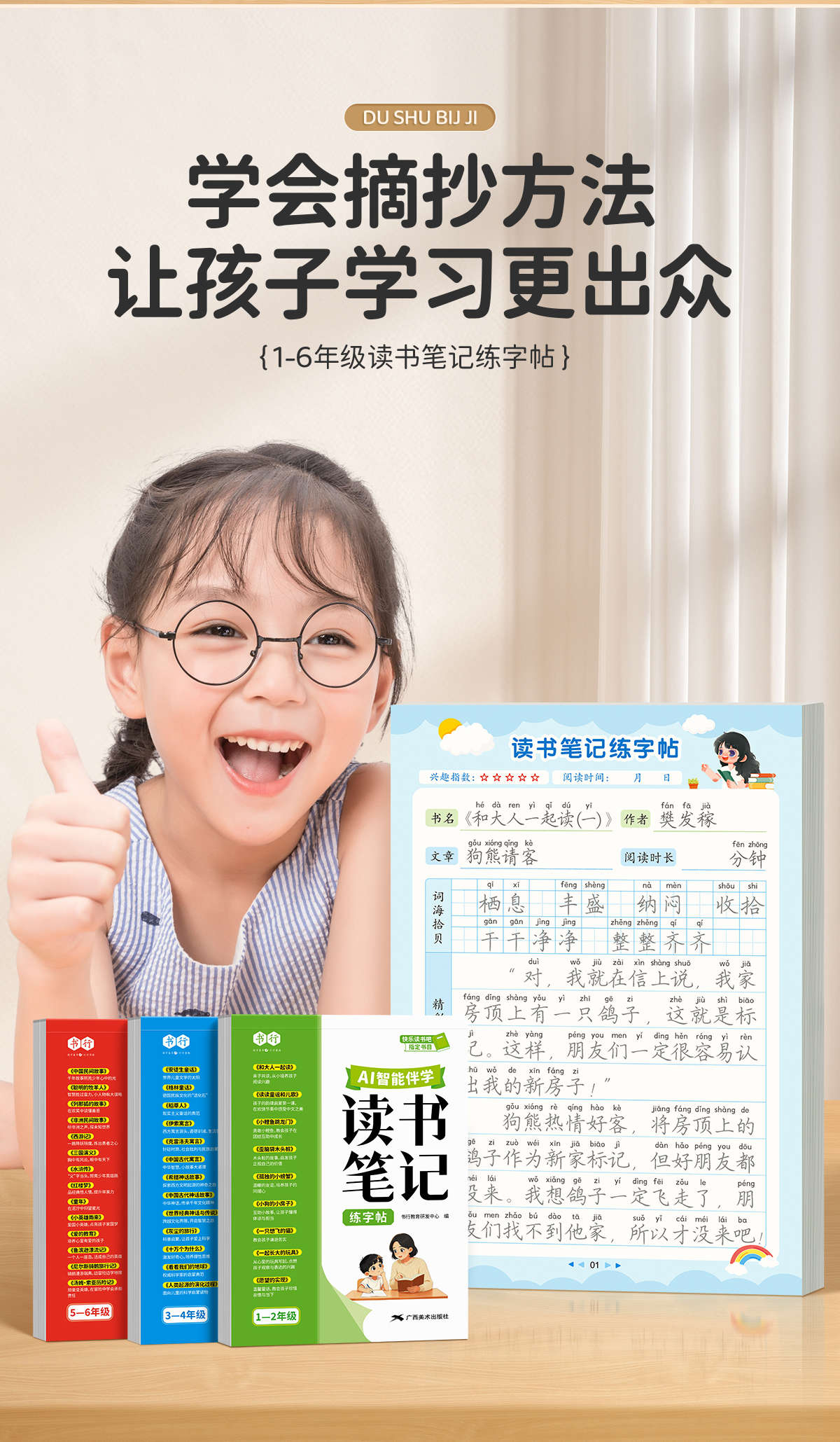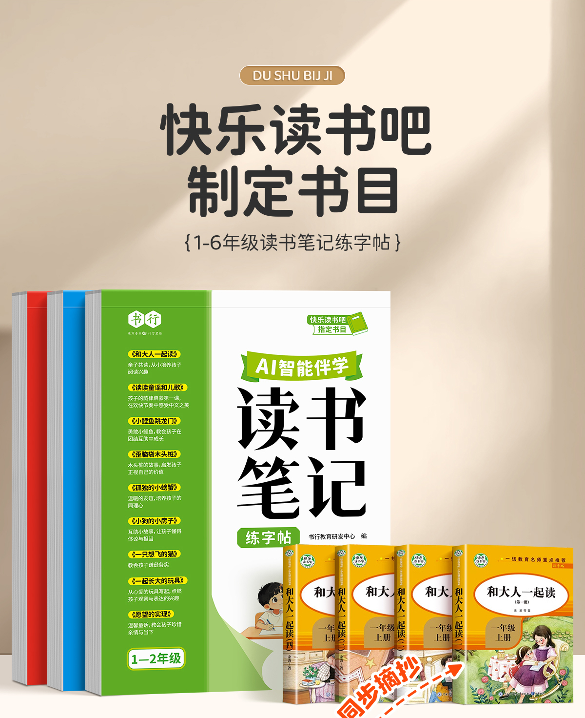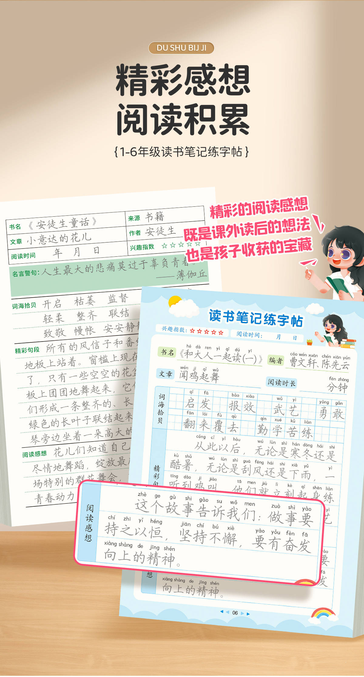 读书笔记练字帖1-6年级同步快乐读书吧作文素材积累+AI智能伴学