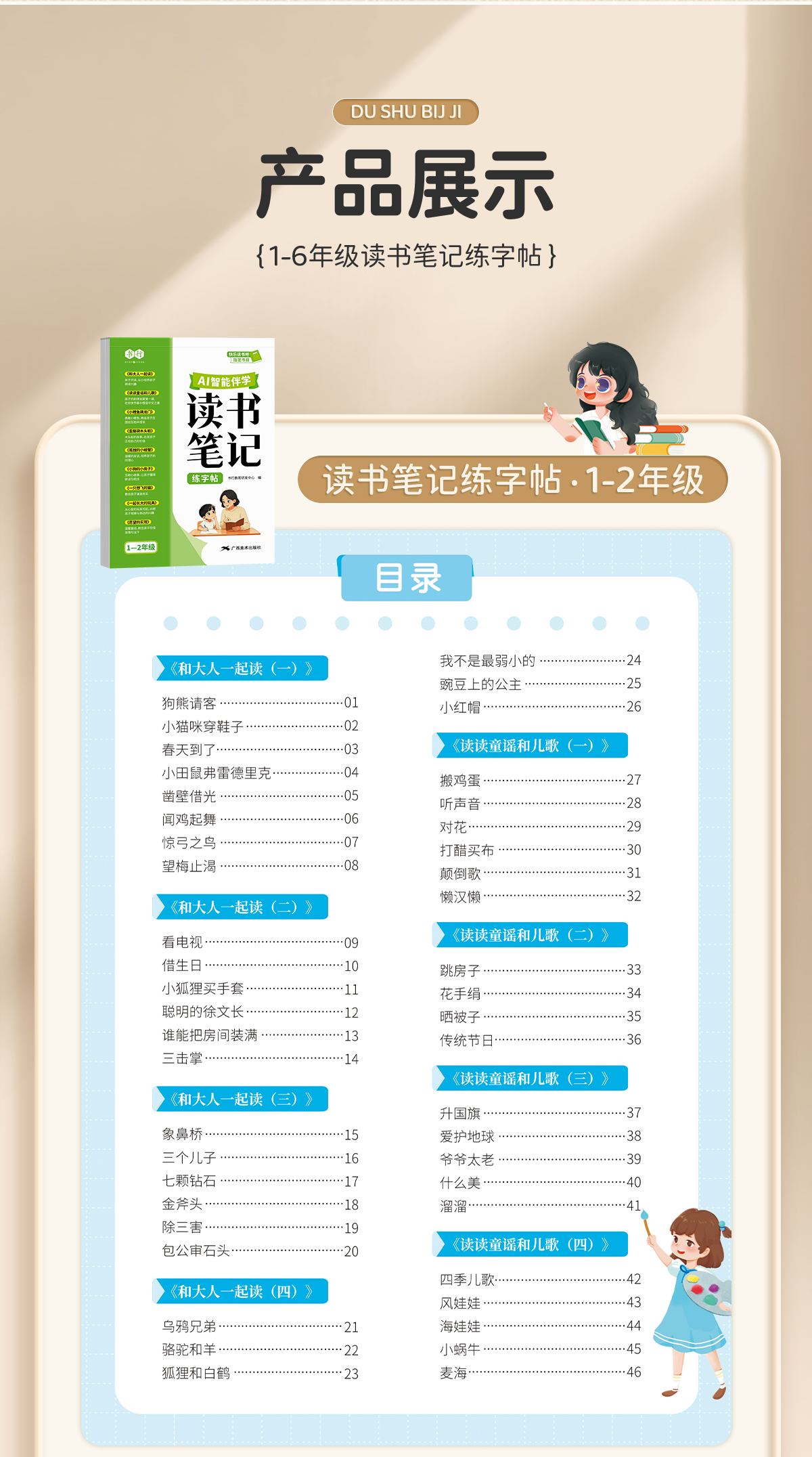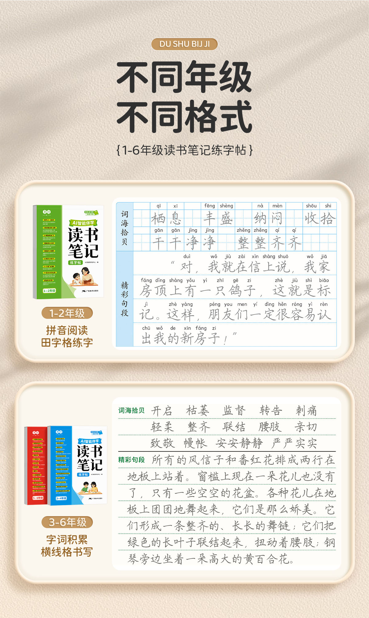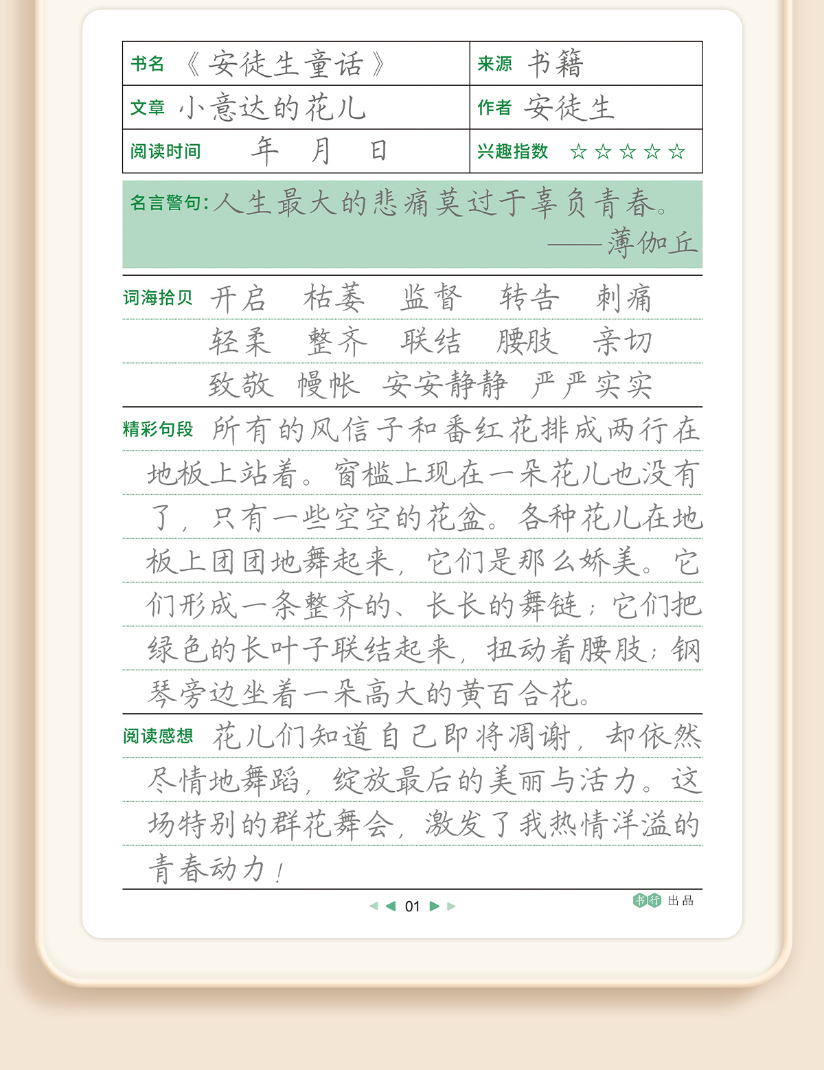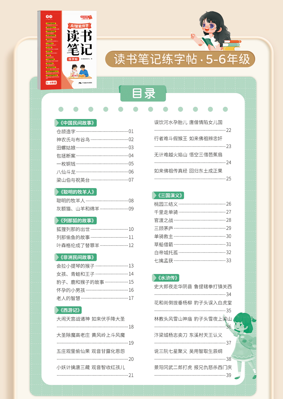 读书笔记练字帖1-6年级同步快乐读书吧作文素材积累+AI智能伴学
