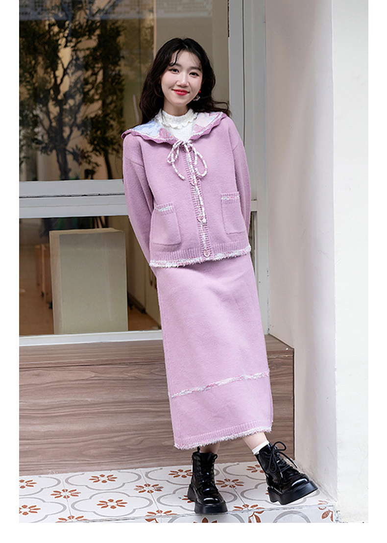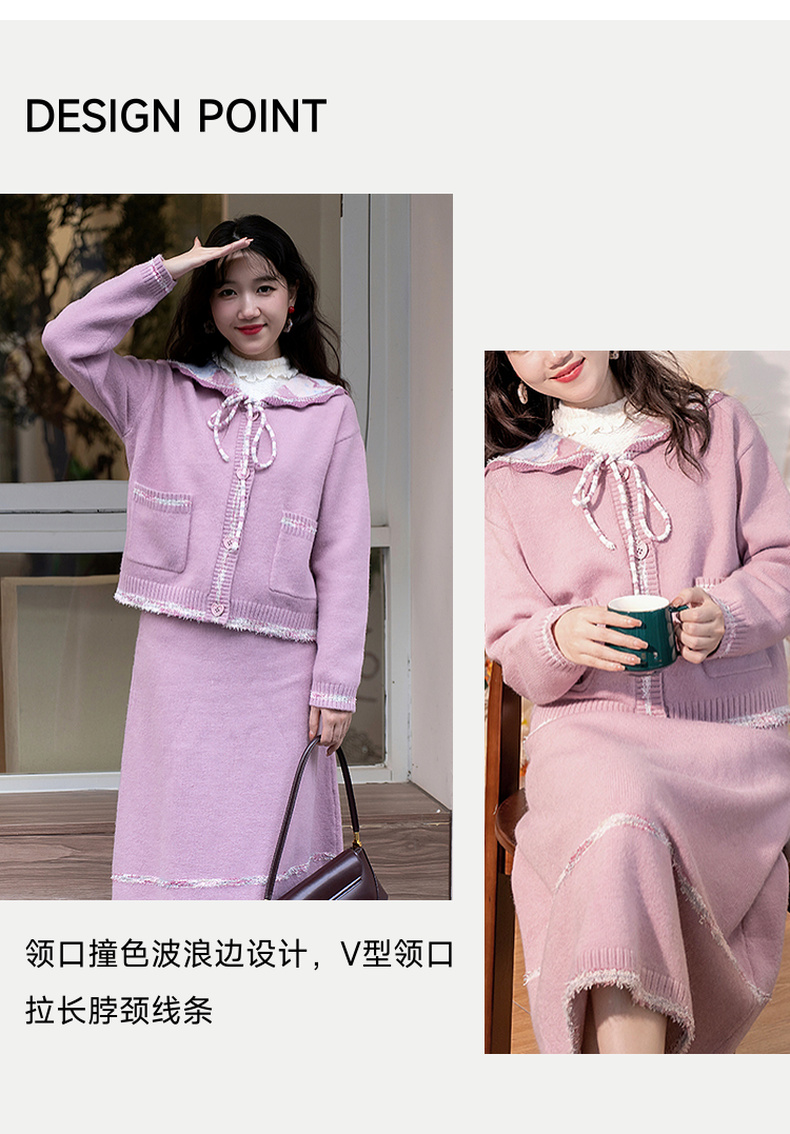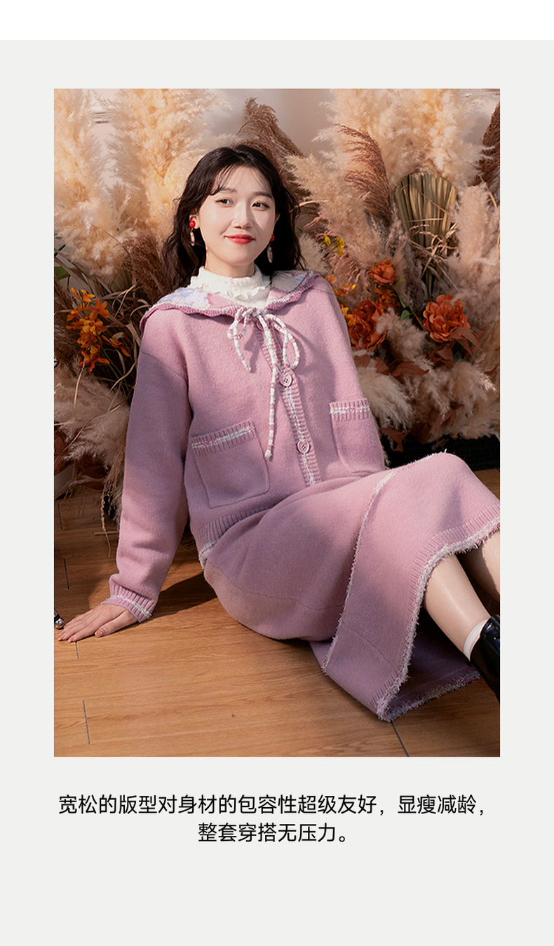 两三事 葡下春茗 2024冬新款流苏装饰毛织两件套女时尚套装