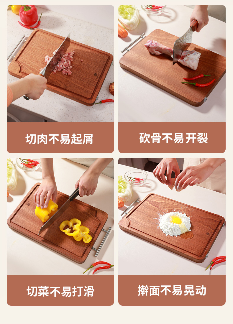 【无漆无蜡带防水槽】原森太菜板抗菌防霉家用乌檀木整木砧板实木粘板切菜案板