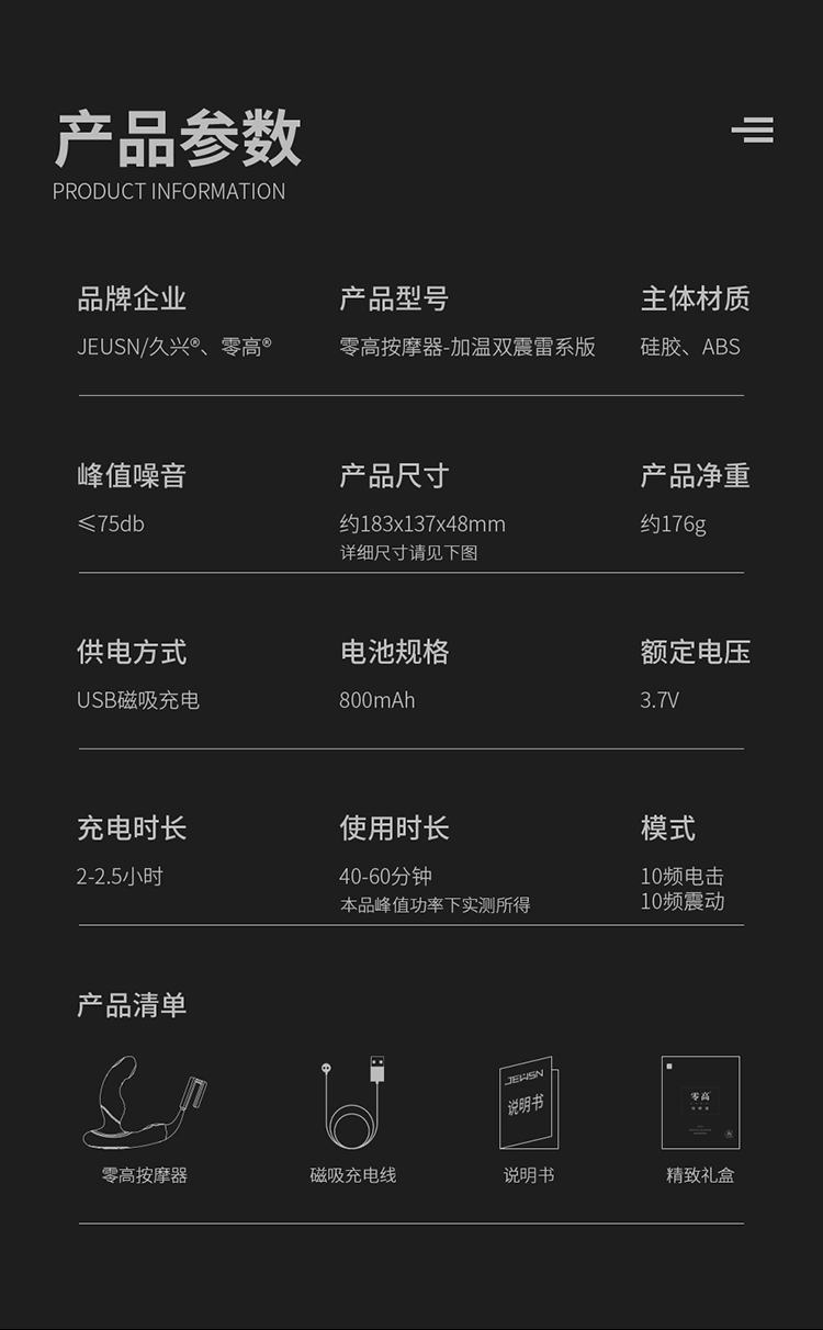JEUSN 久兴前列腺按摩器 加温双震电击 小程序遥控