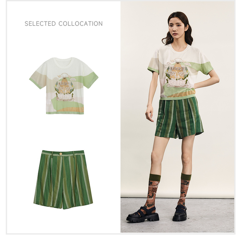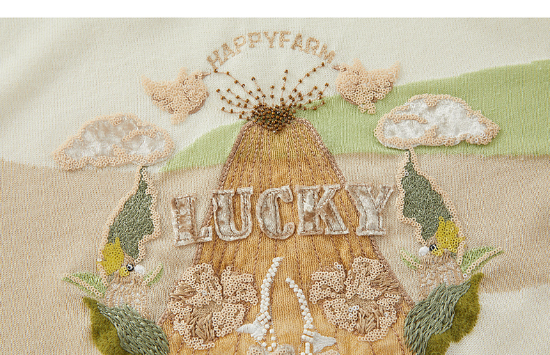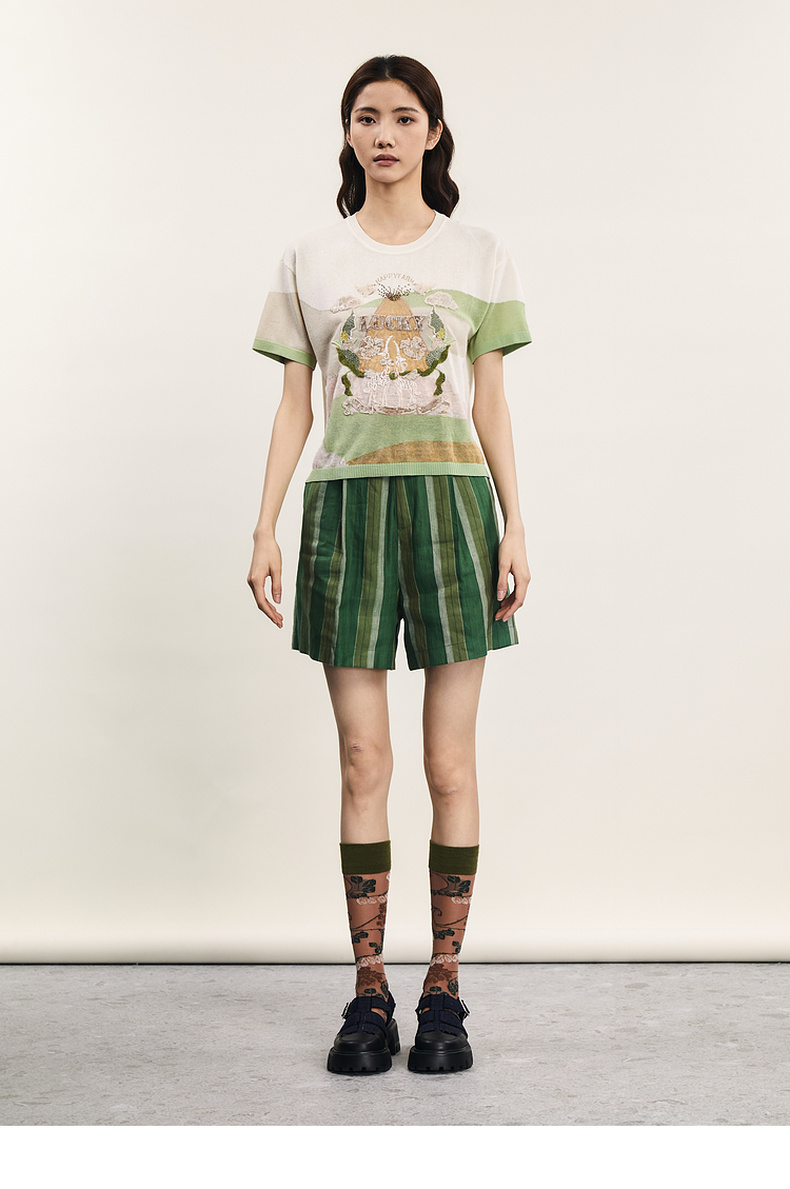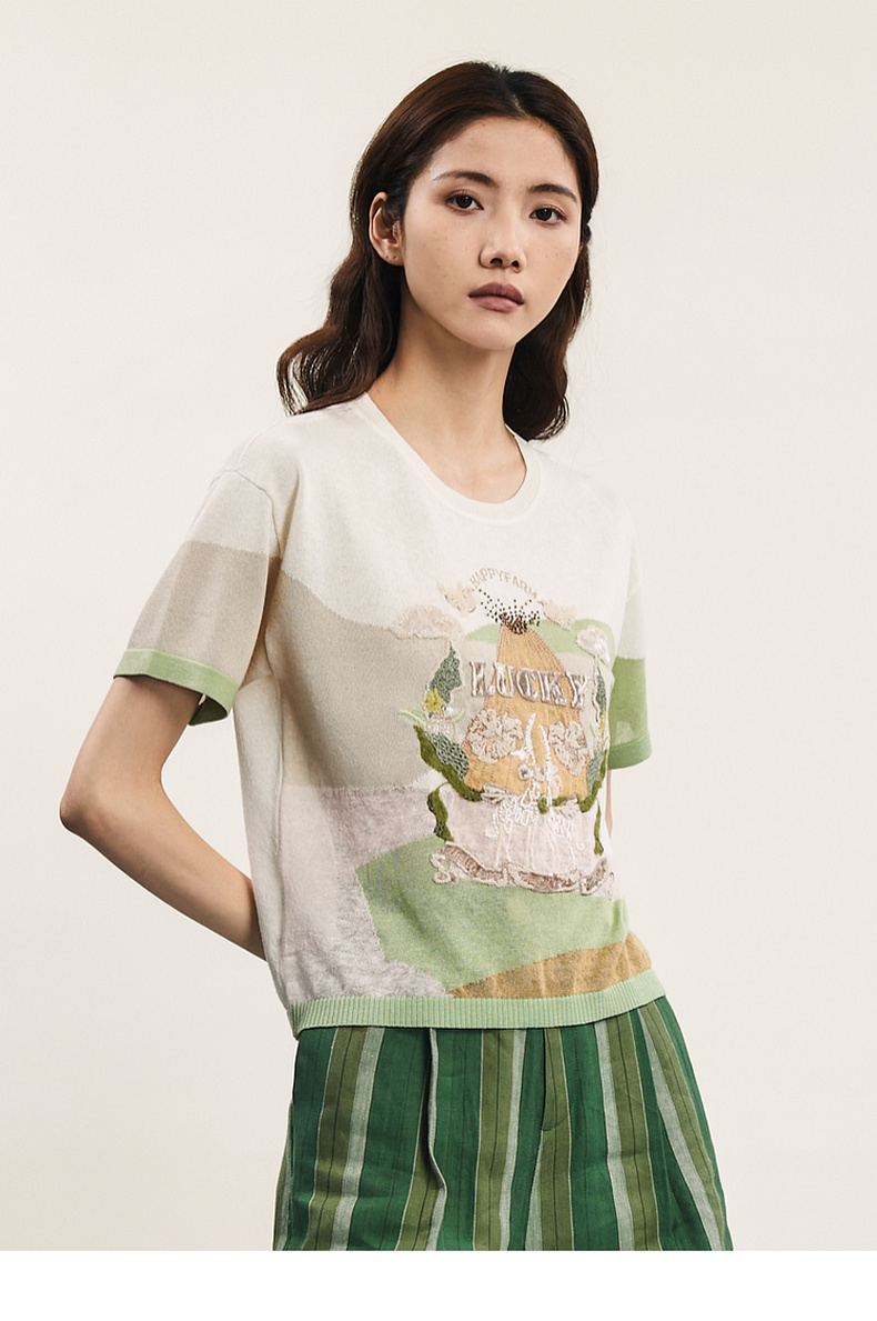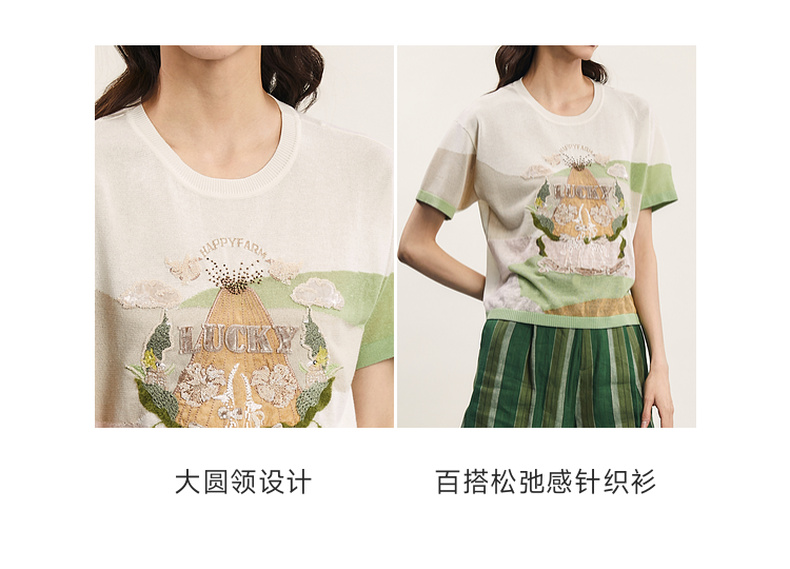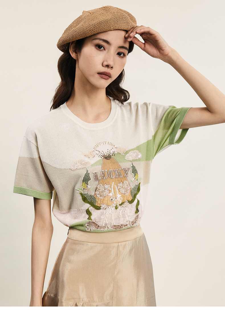 谜底套头针织衫短袖女2024夏季新品复古学院风绣花上衣242MZ0869