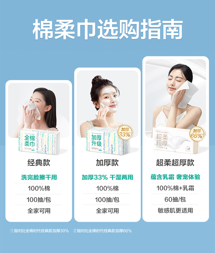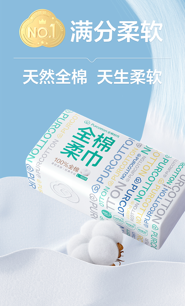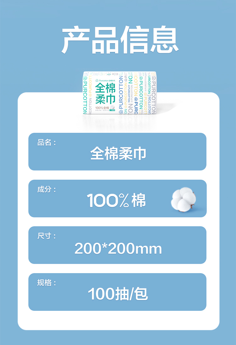 全棉时代纯棉棉柔巾加厚一次性湿两用20×20cm 100片×4包