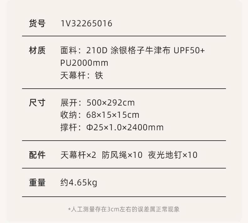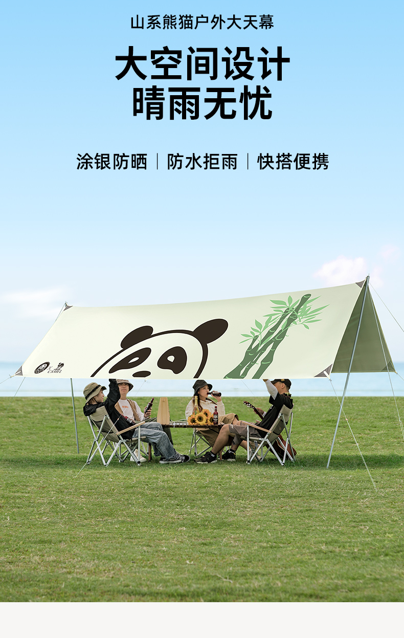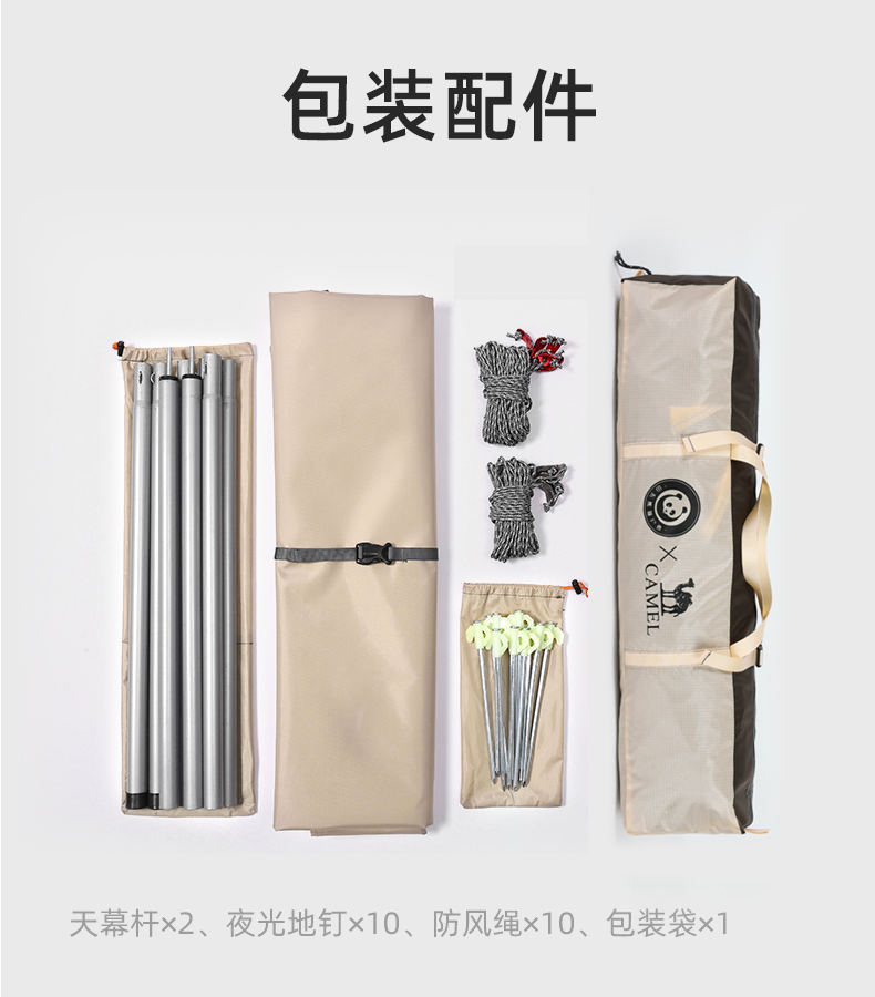 【山系熊猫】骆驼户外精致露营天幕帐篷野餐便携式涂银防晒遮阳棚 1V32265016