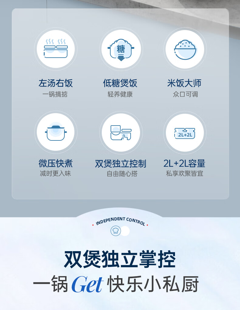 【小家电】摩飞多功能双胆电饭煲MR8501 HF