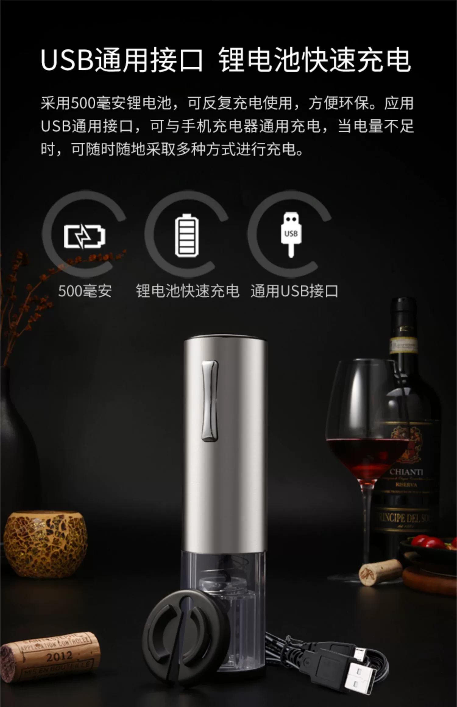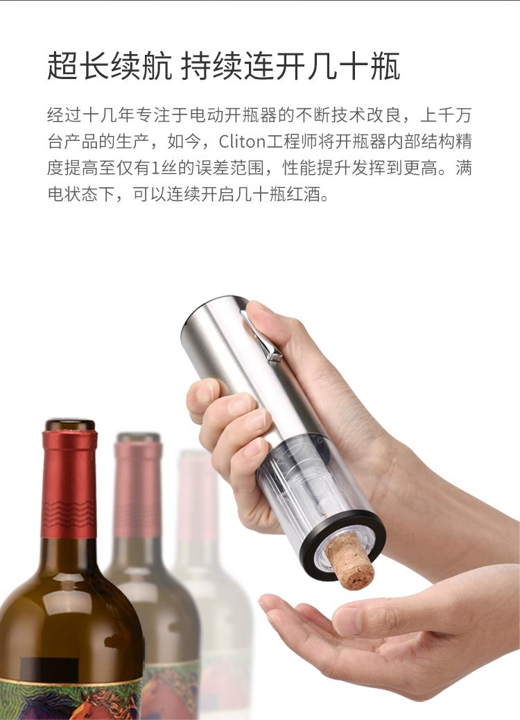 CLITON科力通充电款红酒开瓶器不锈钢开酒器全自动启瓶器起子