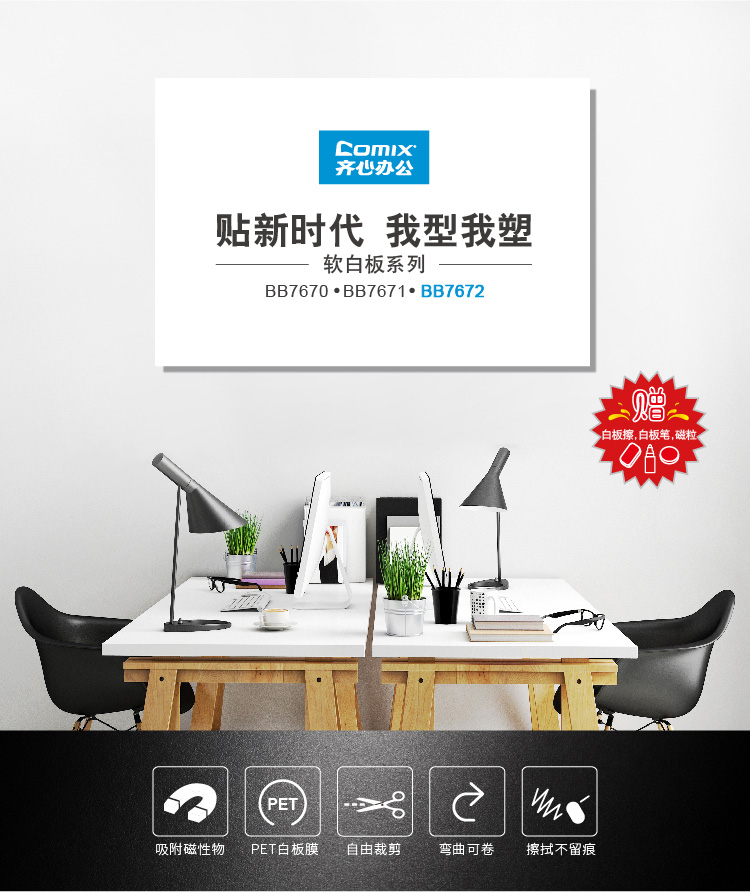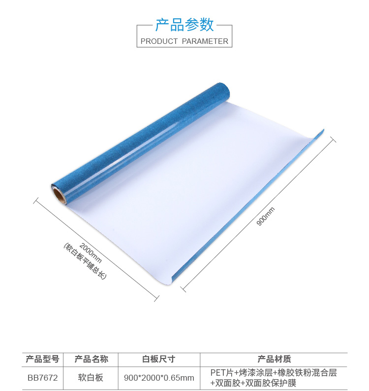 齐心 BB7672 背胶软白板(90*200cm) 白