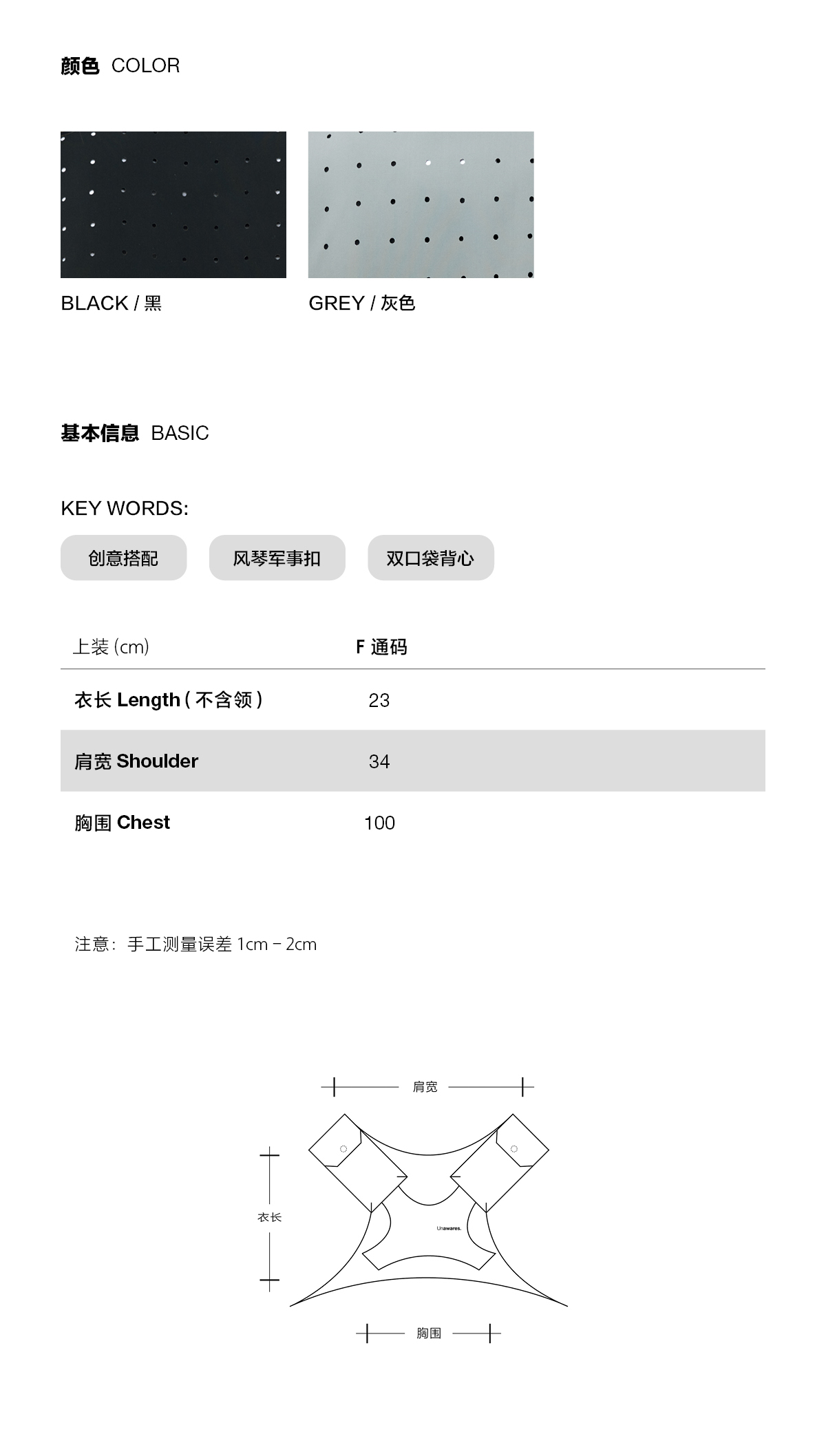 | 颜色: BLACK/黑色,GRAY/灰色 | 货号: SS21-V-01 |