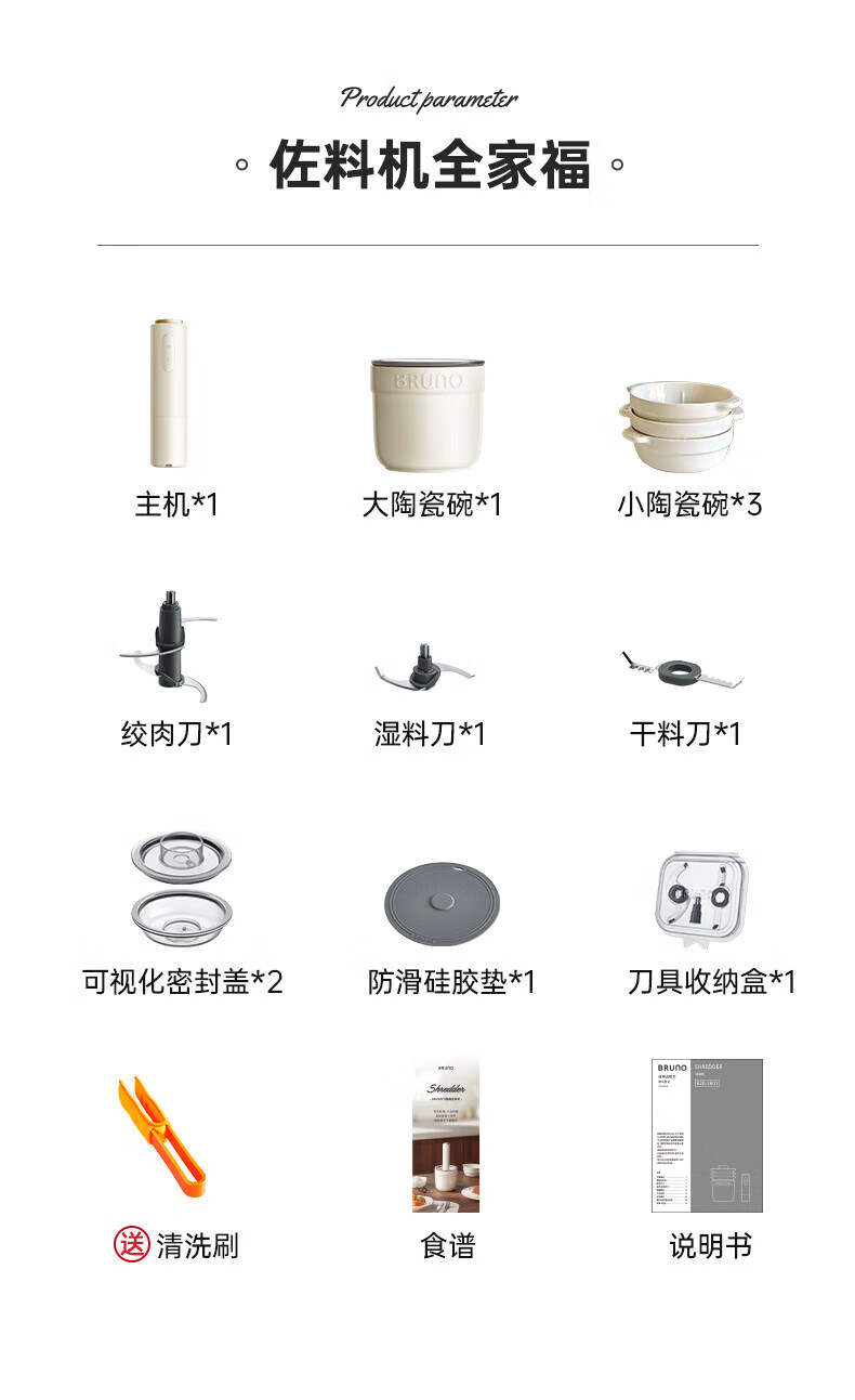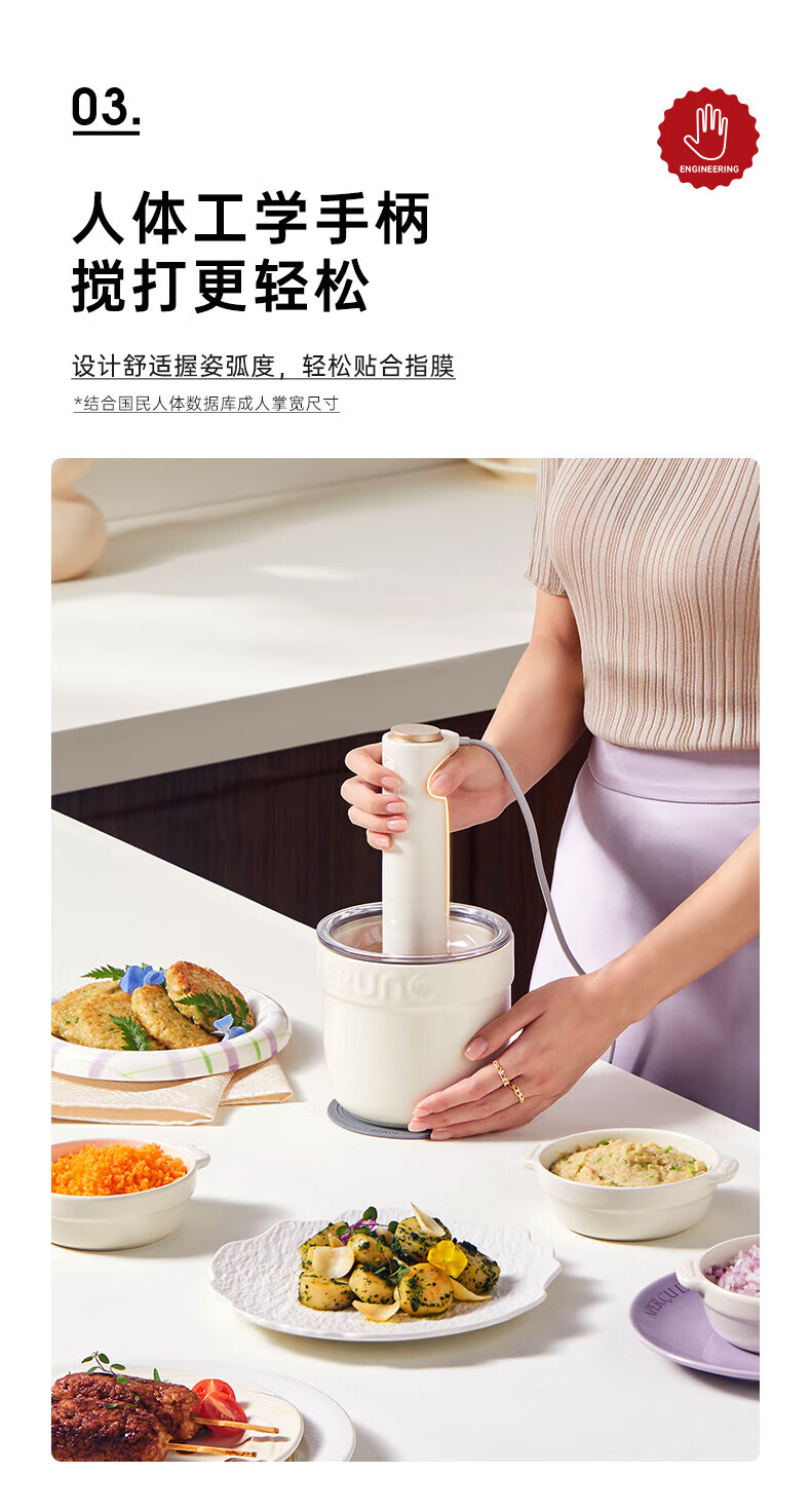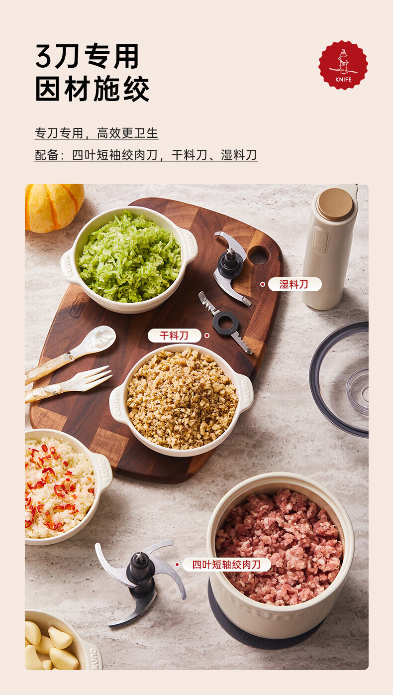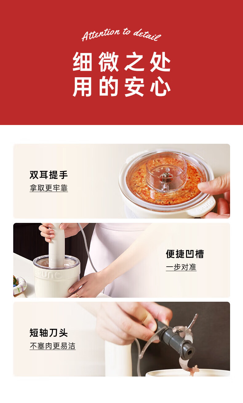 Bruno小陶器绞肉机家用料理机绞馅机碎肉机象牙白