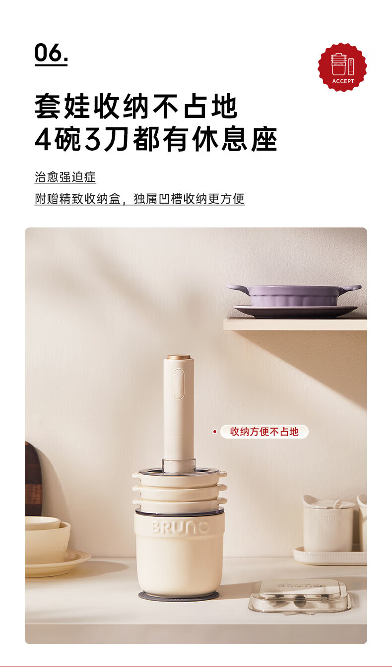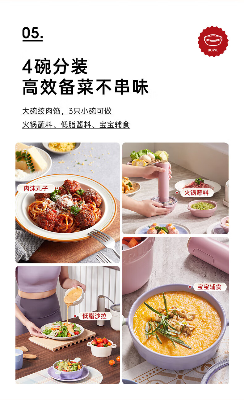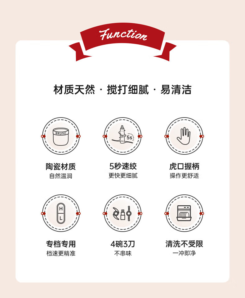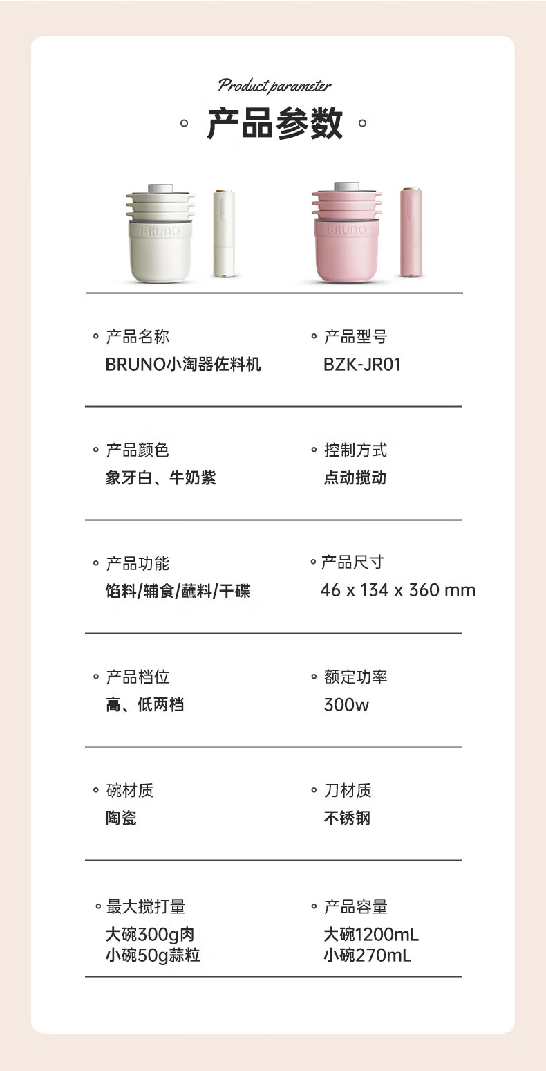 Bruno小陶器绞肉机家用料理机绞馅机碎肉机象牙白