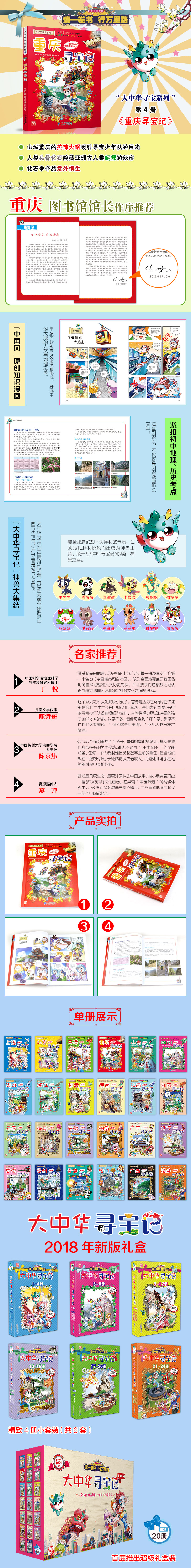 《我的第一本大中华寻宝漫画书:重庆寻宝记》以精彩逗趣的漫画为表现形式,以紧张刺激的寻宝故事为线索,将全国各地的地理风貌、历史遗迹、文化艺术、物产资源等知识内容巧妙地融进故事情节中,带领孩子认识祖国的大好山河,作一趟纸上旅游。《我的第一本大中华寻宝漫画书:重庆寻宝记》在每个章节后,均附有简明的各地区概况,生动有趣,能拓展孩子的视野,相信对孩子在地理、历史,以及中国文化方面的学习会有所帮助。