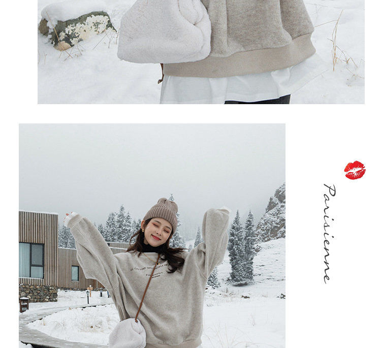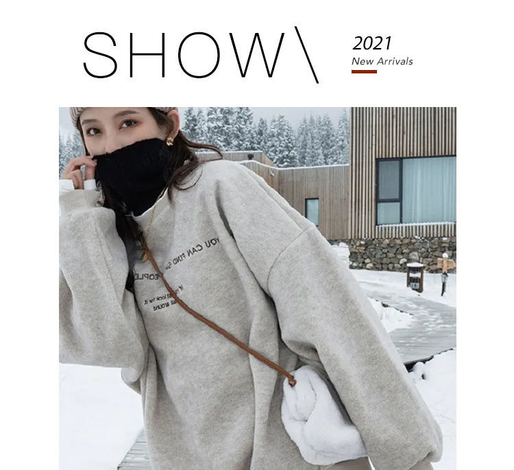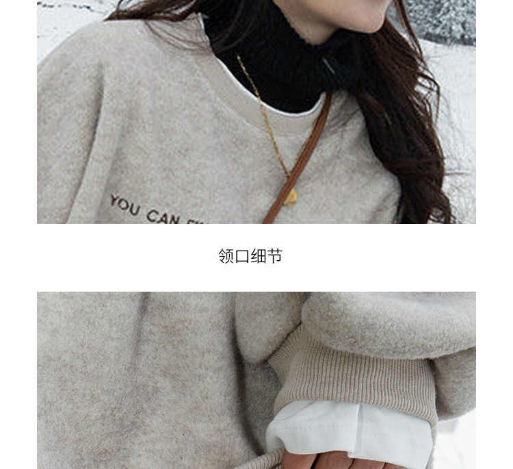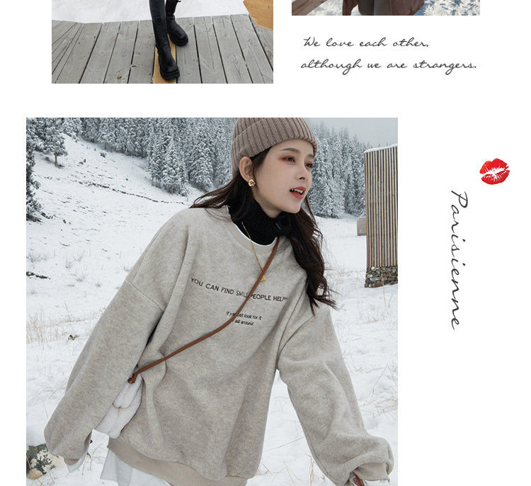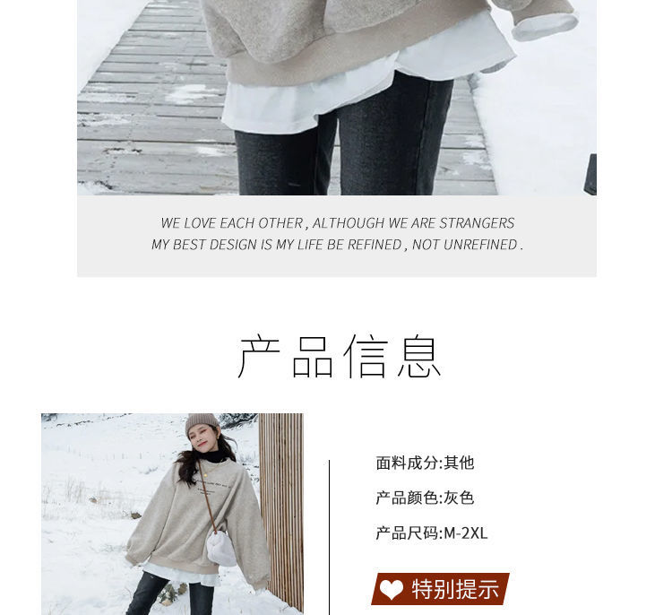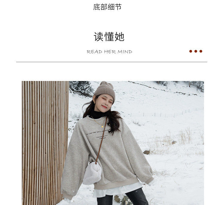 假两件呢子加绒卫衣女2021冬装新款女装韩版宽松小个子超火上衣女