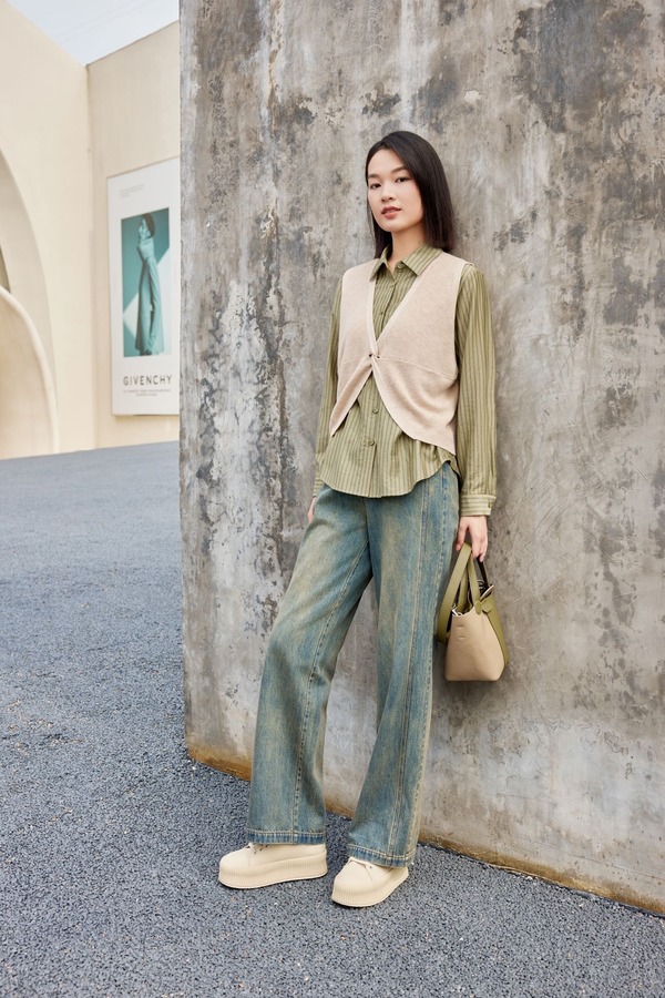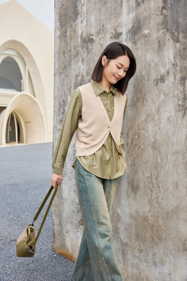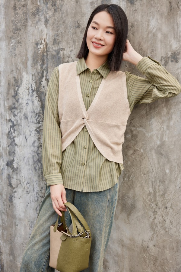 LNNNS #全新 复古绿色衬衫针织马甲套装 18920