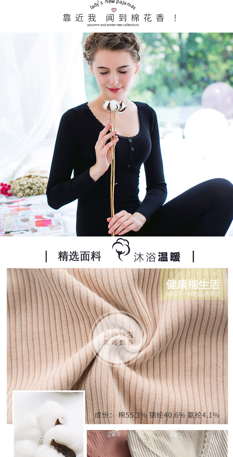 【买一送一】新款秋衣秋裤套装女,暖心相伴;自发热美体修身,让你尽显迷人曲线;竖条纹打底,时尚不失舒适;条纹纽扣棉毛衫,细节之处见品位!