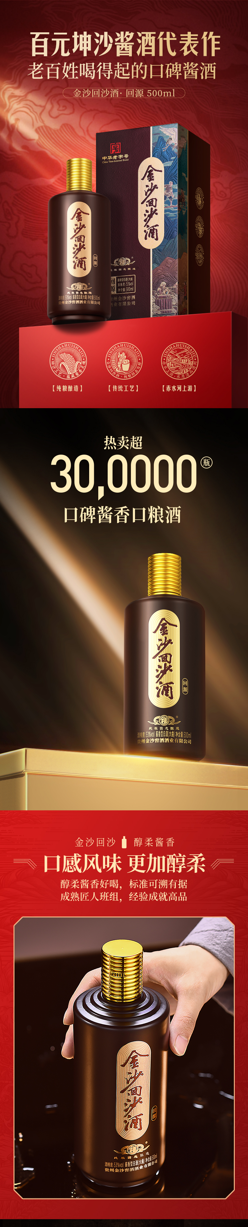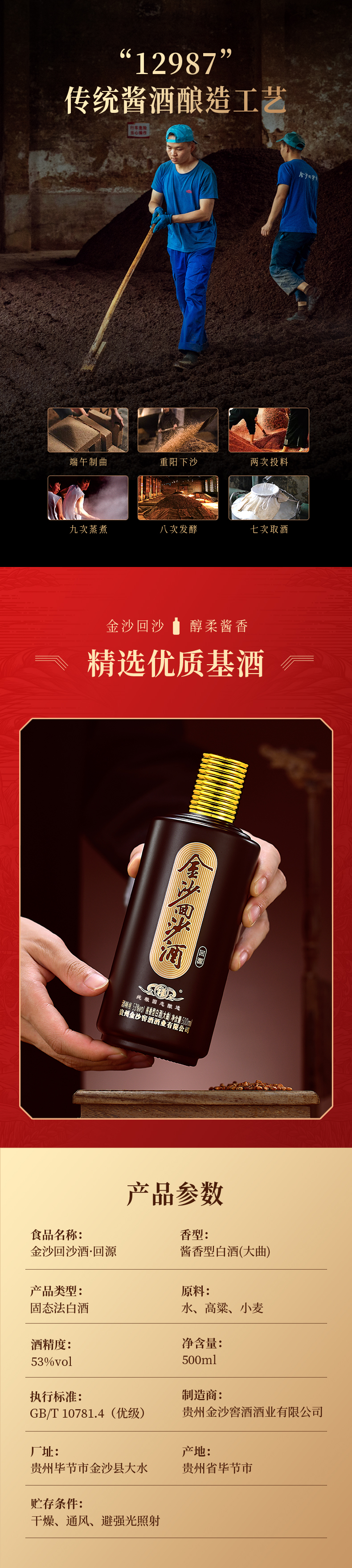【 热款 回源】53度金沙回沙酒(回源)500ml1*6 贵州酱香型白酒 大曲坤沙纯粮酒 口粮酒 宴请自饮酒水 500ml