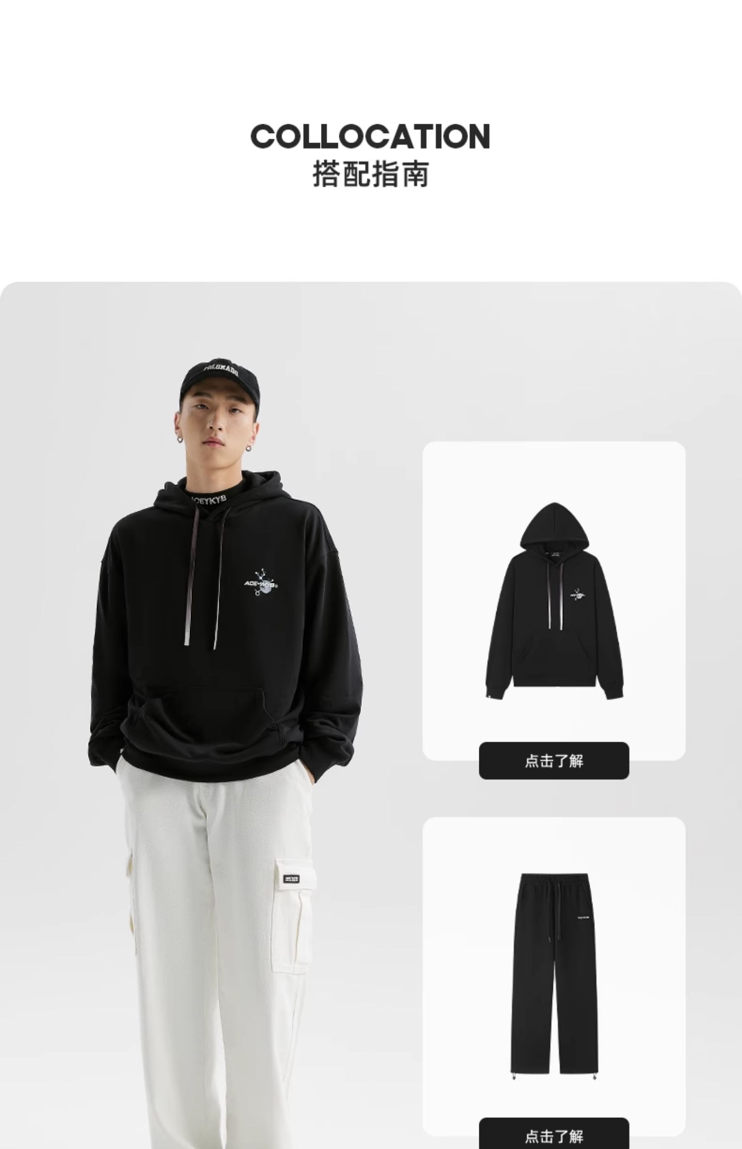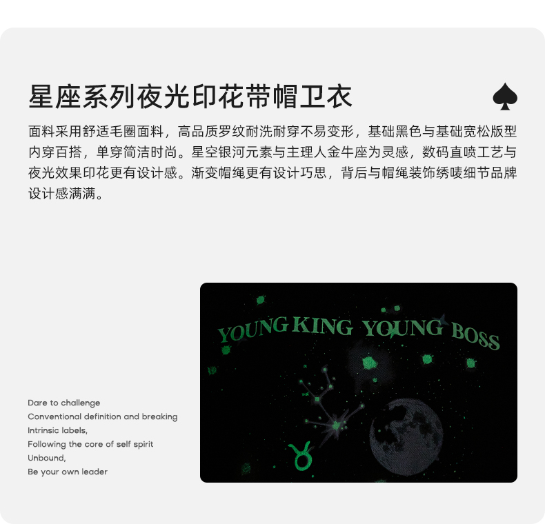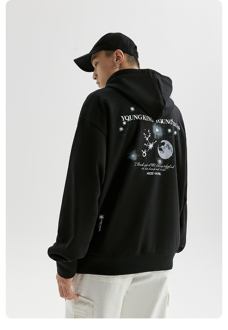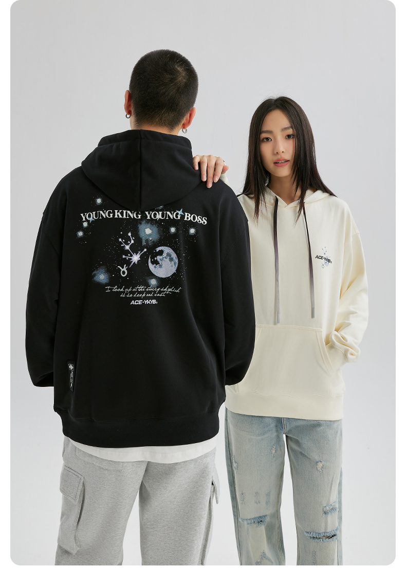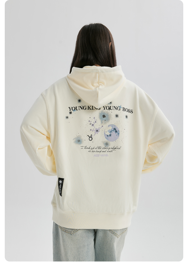 YKYB星座印花连帽卫衣潮牌宽松帽衫个性夜光印花街头休闲外套ins
