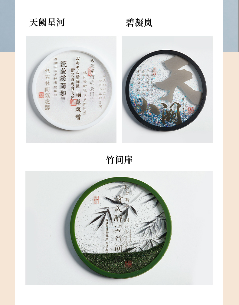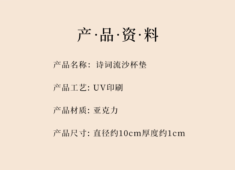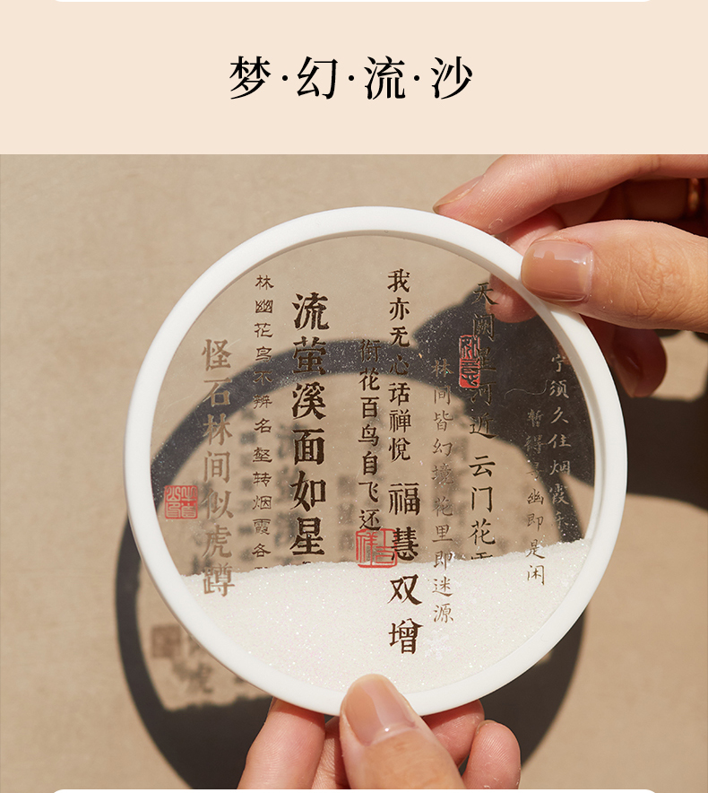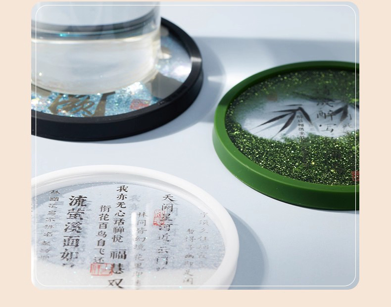 牛首山文创诗词流沙杯垫南京文创礼物创意杯垫隔热垫创意流沙杯垫