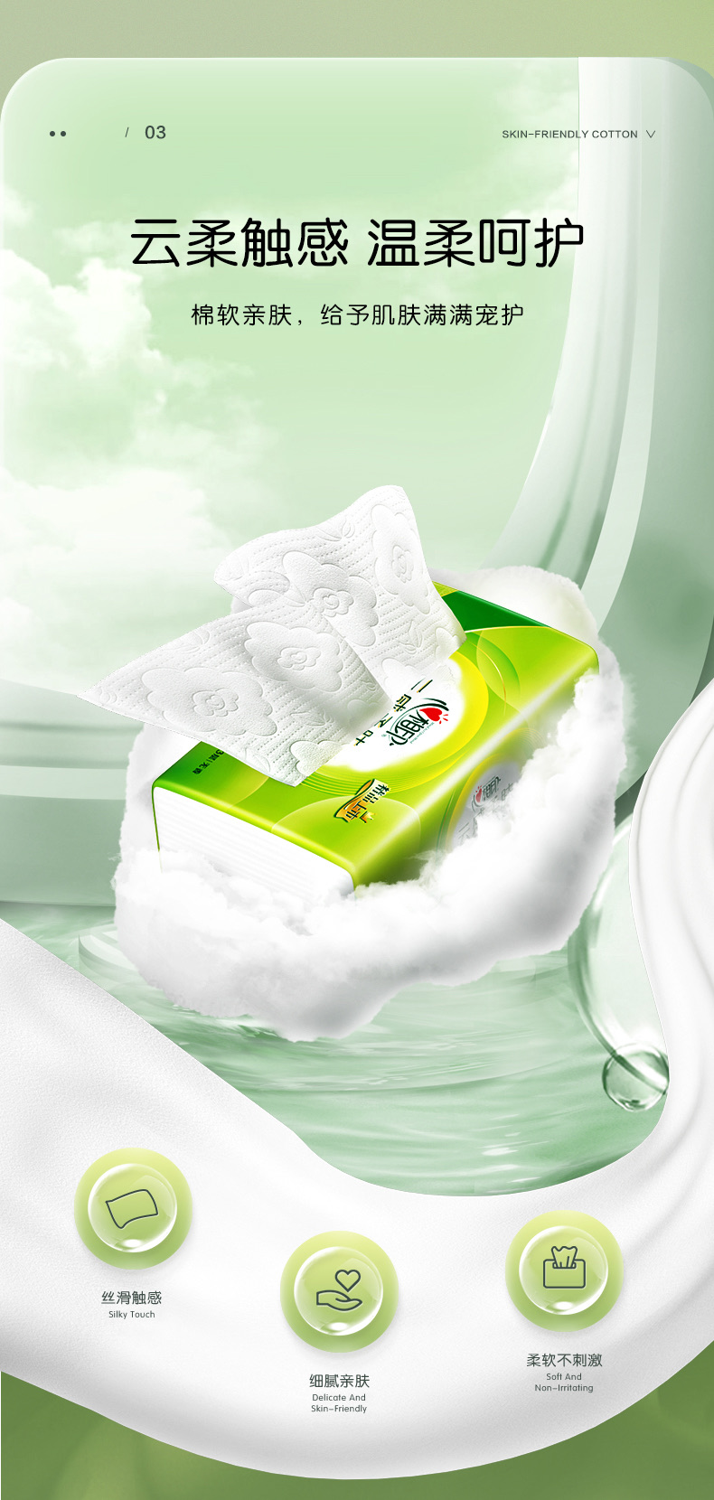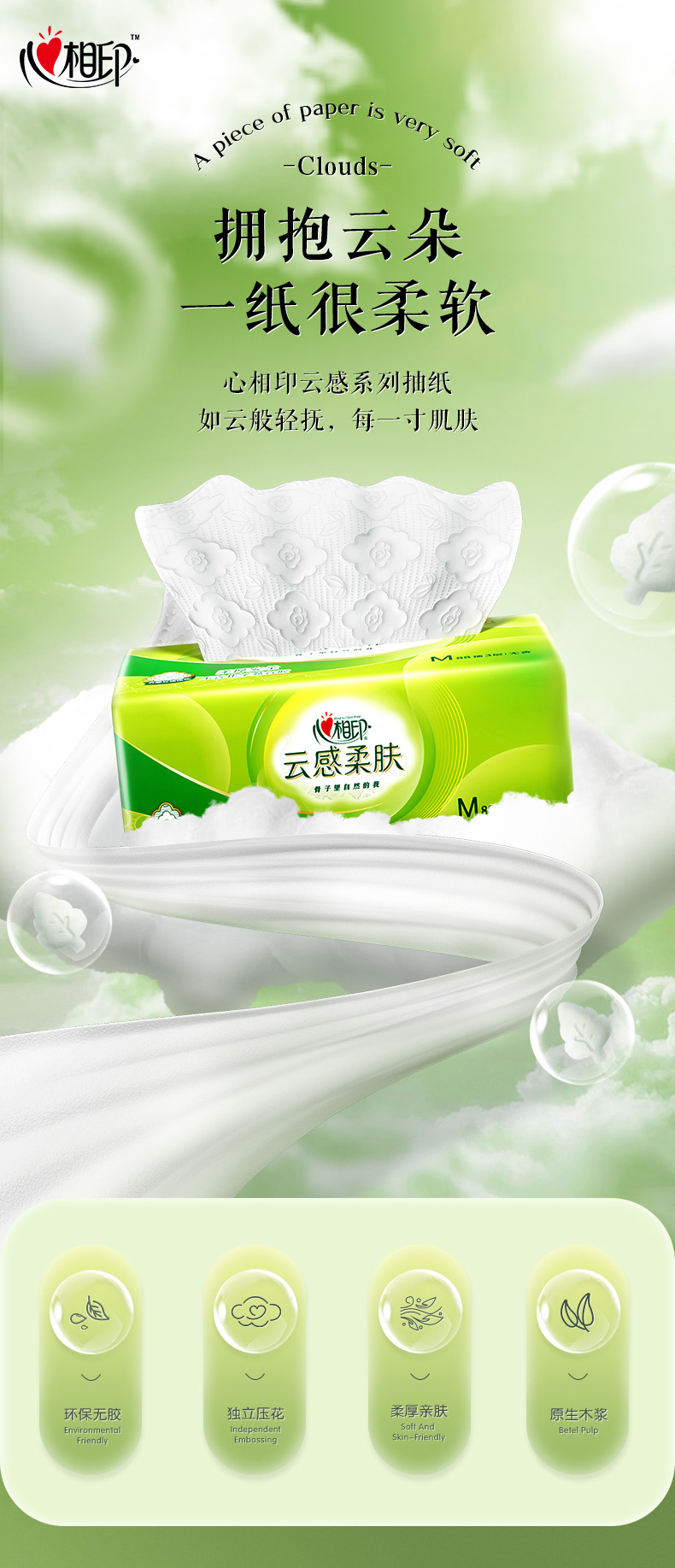 心相印抽纸 云感88抽16包装三层立体压花塑装纸(M码)