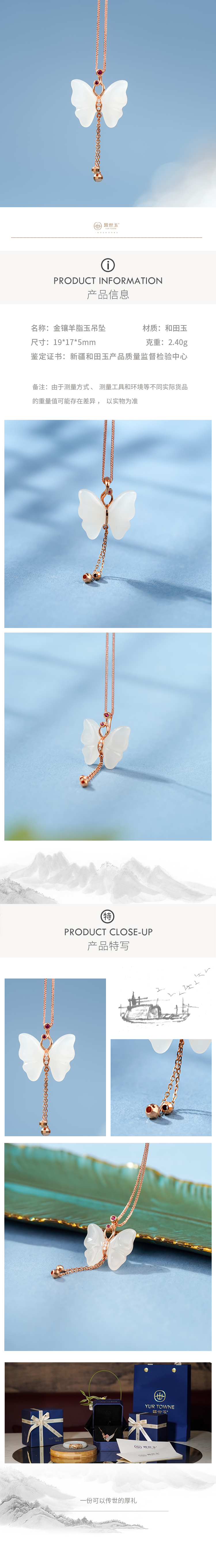 「一口价」【蝶舞流光】金镶白玉吊坠