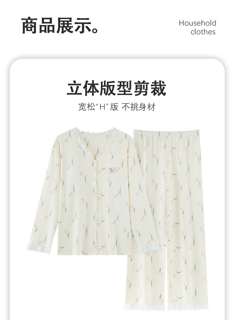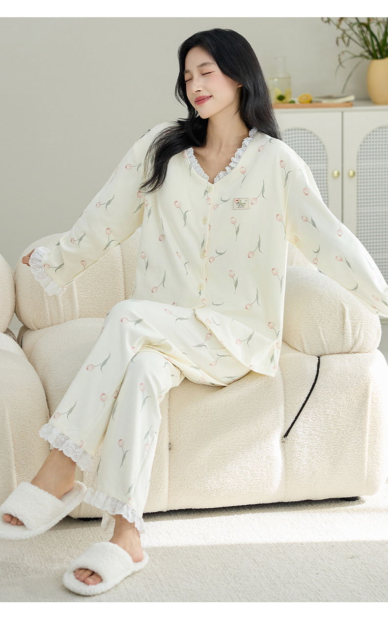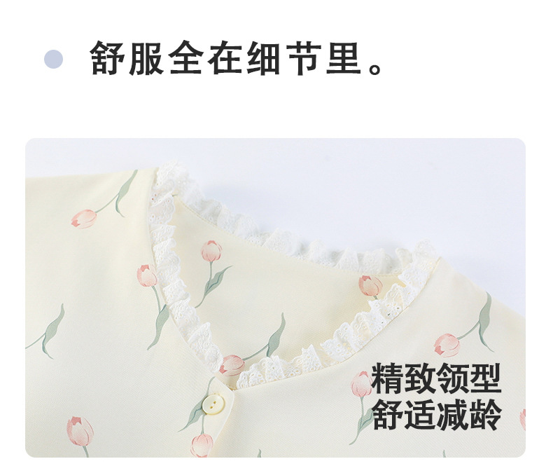 睡衣女春秋季开衫纯棉长袖长裤蕾丝甜美可爱可外穿女士家居服套装 商品图8