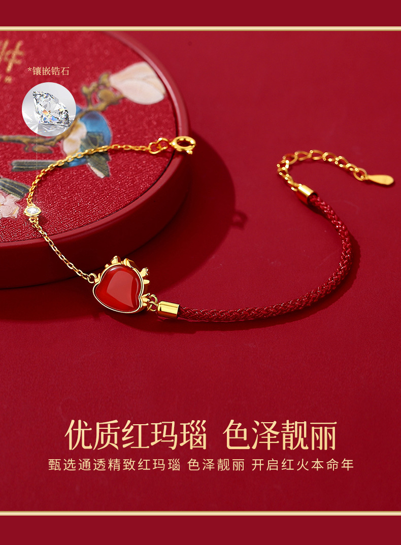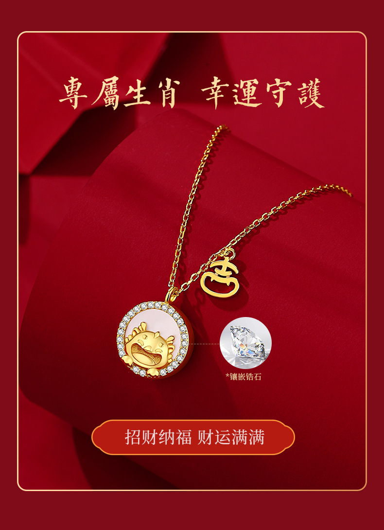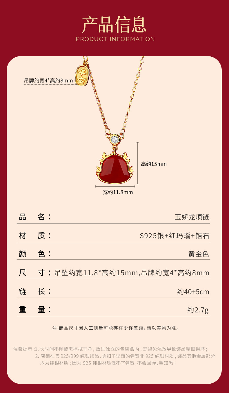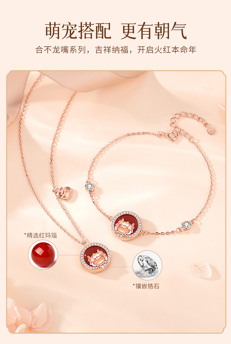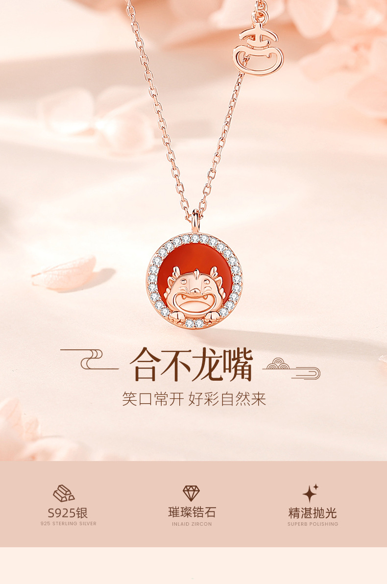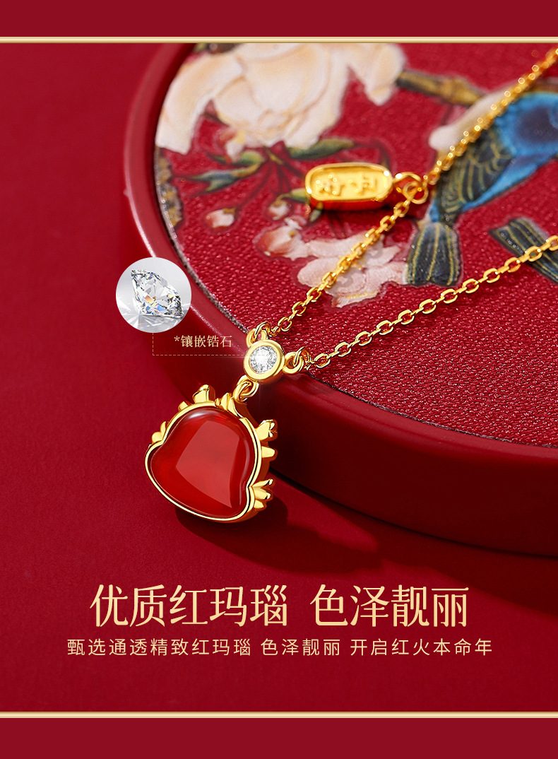 玖钻新款爆款原创生肖龙项链女轻奢小众红玛瑙吊坠本命年礼物