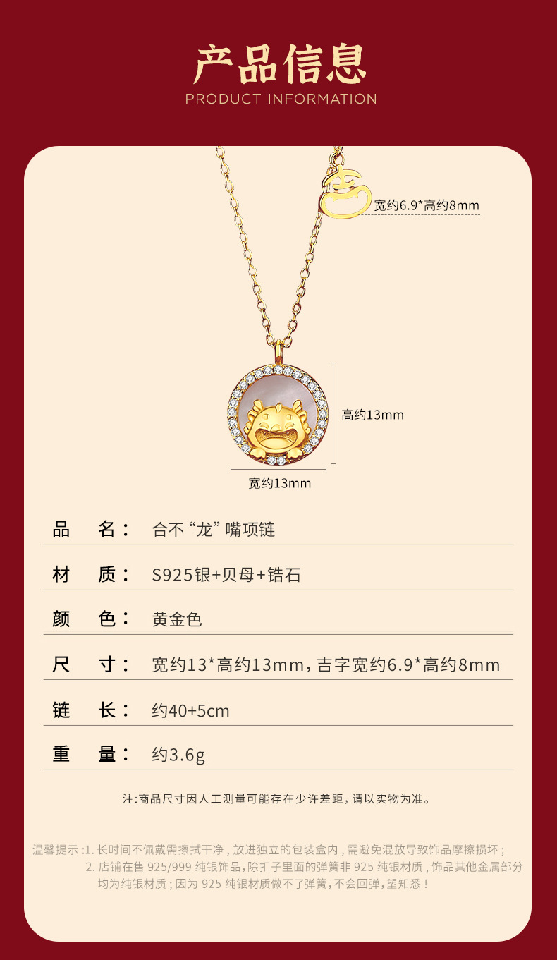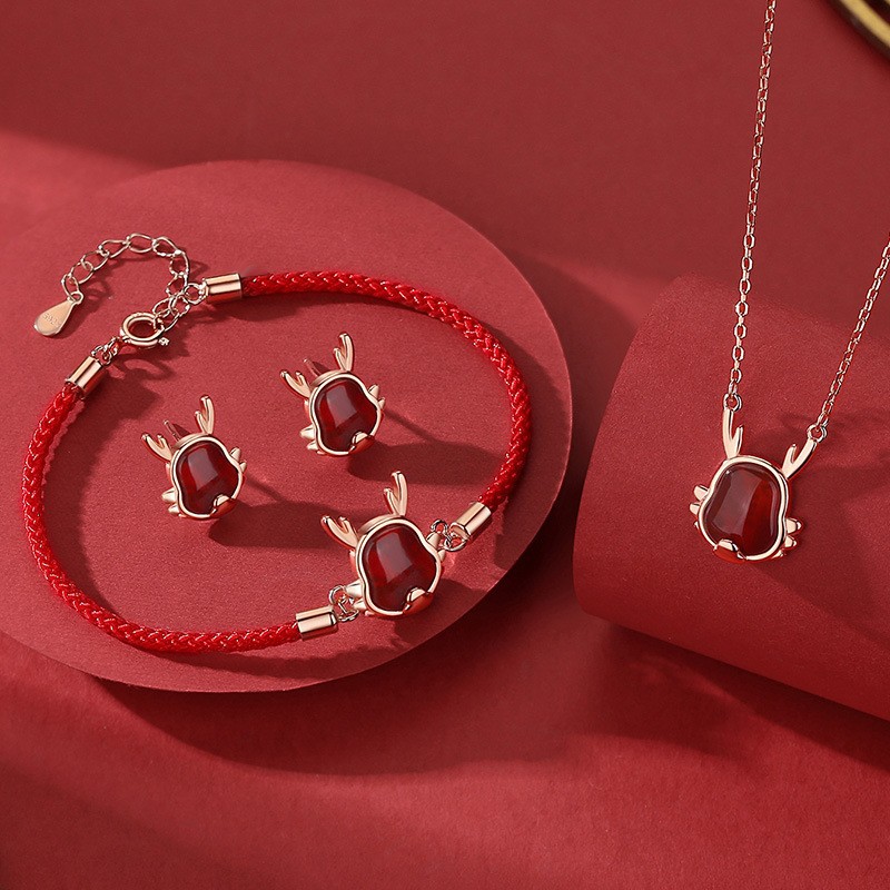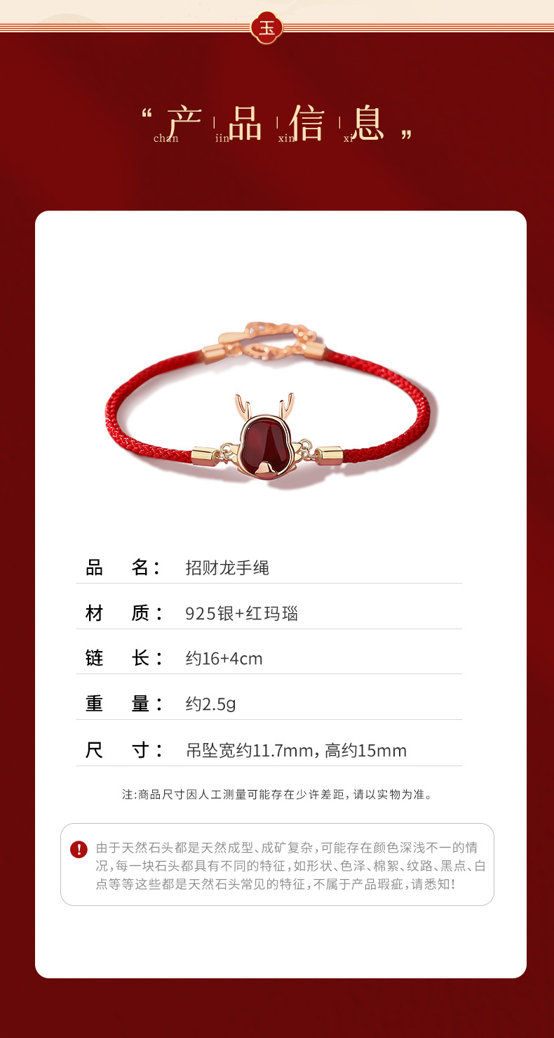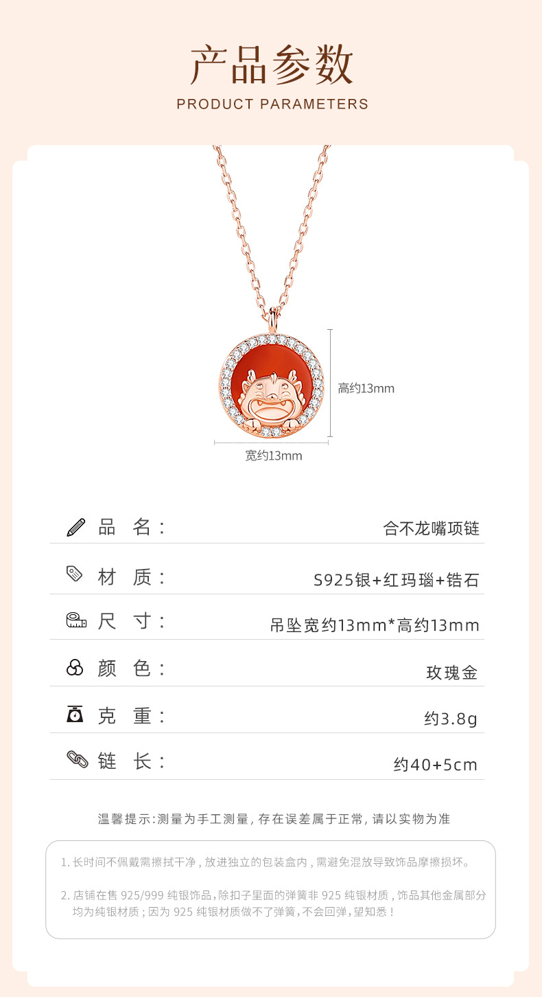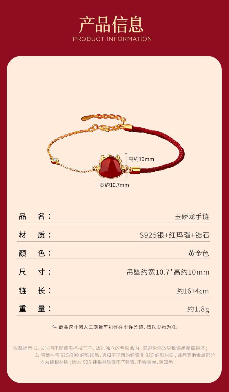 玖钻新款爆款原创生肖龙项链女轻奢小众红玛瑙吊坠本命年礼物