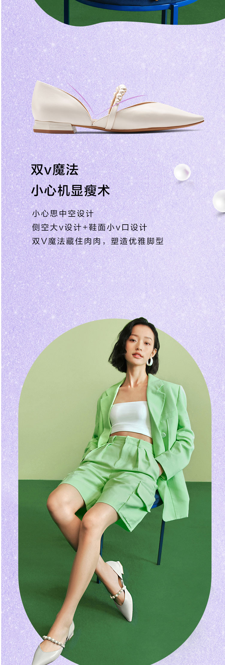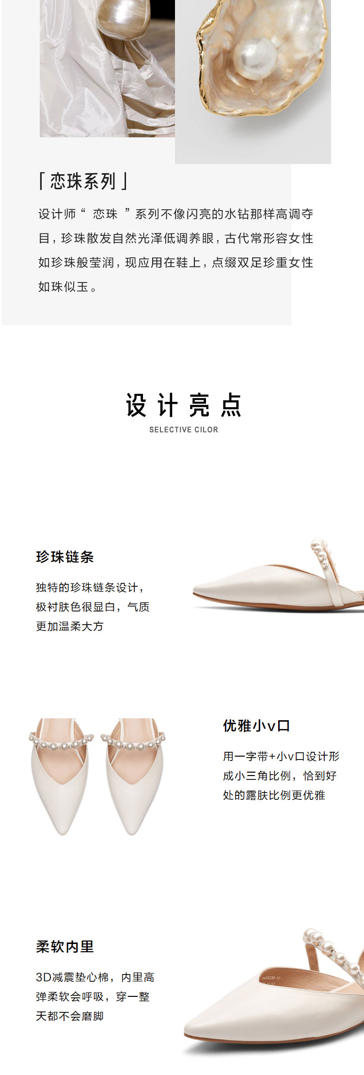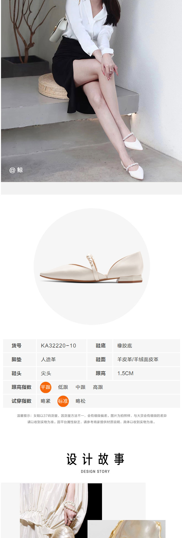 接吻猫女鞋2022春夏季新款甜美玛丽珍凉鞋气质珍珠尖头粗跟单鞋女32220-10