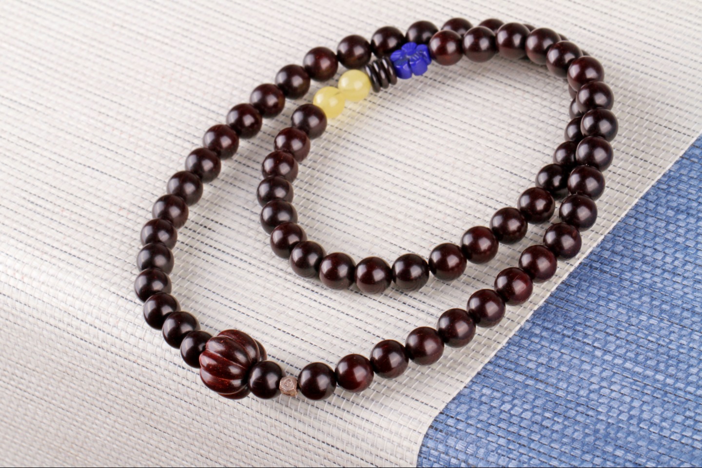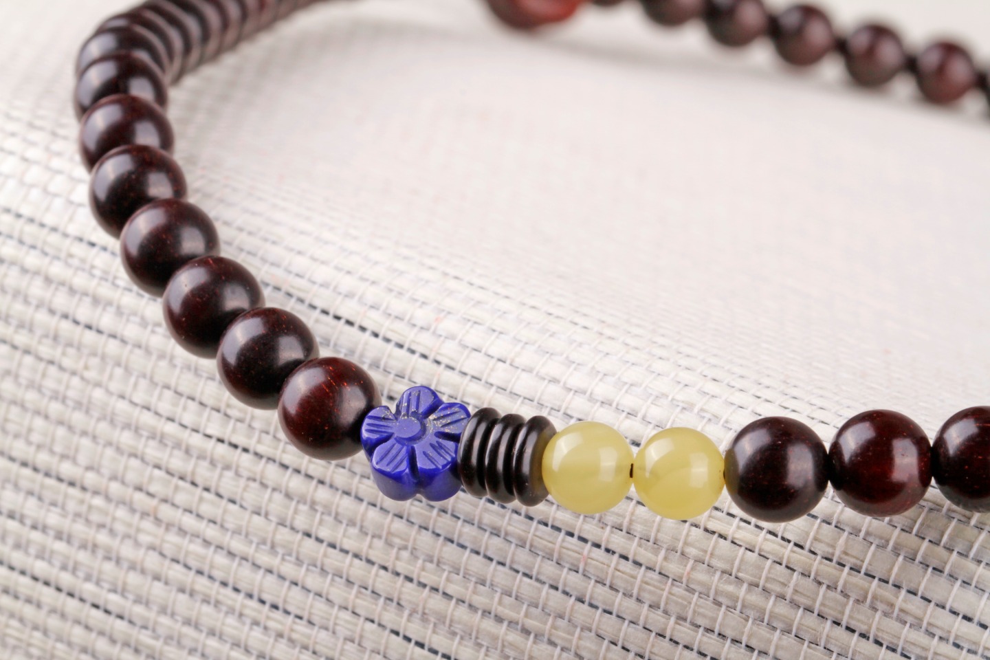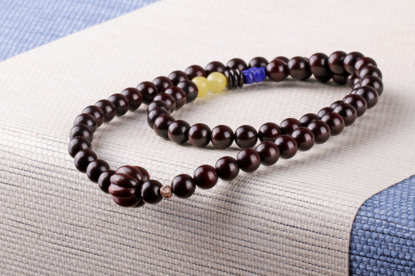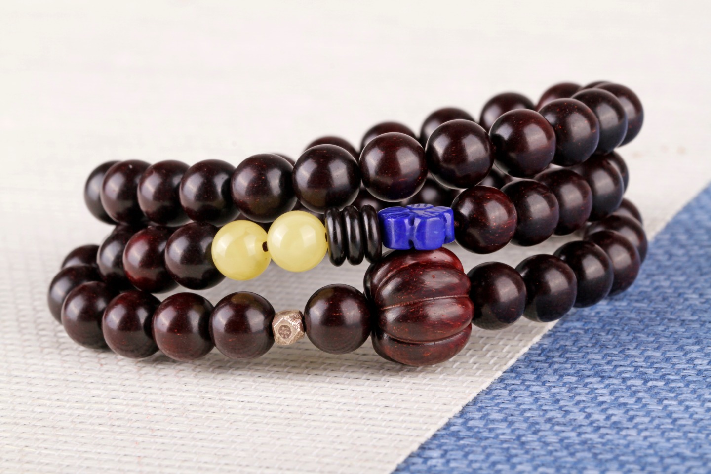 搭配:印度小叶紫檀为主,搭配小叶紫檀南瓜珠,天然原矿蜜蜡,青金石花片,925银点缀。