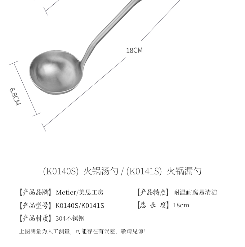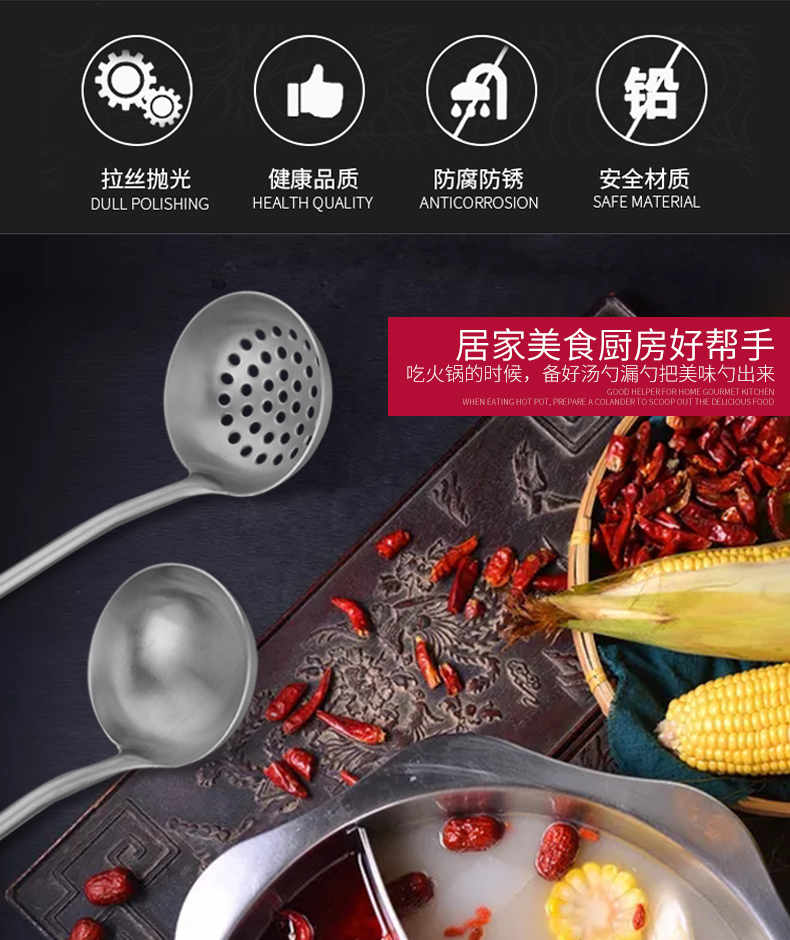 美思工房304不锈钢火锅汤勺漏勺捞勺加厚长柄勺子家用
