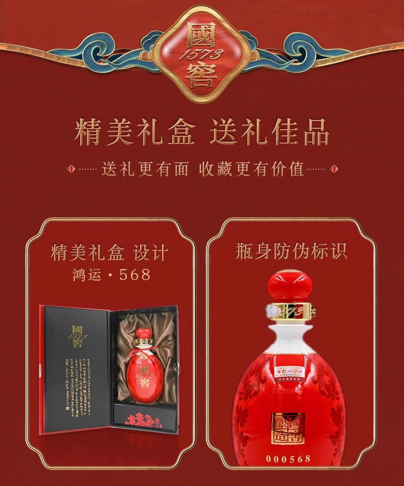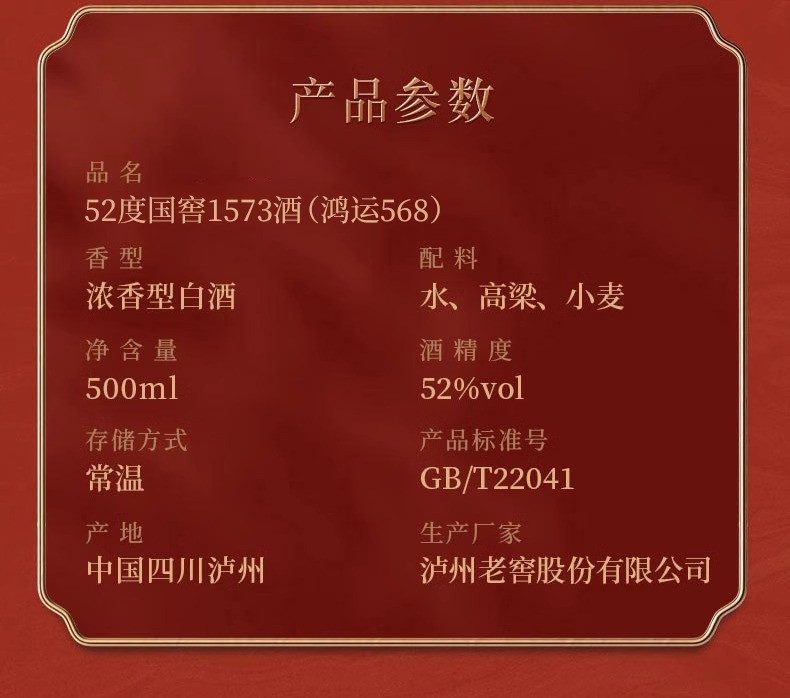 【酒厂直营】国窖1573浓香型白酒 52度 500ml 鸿运568 泸州老窖官方旗舰店