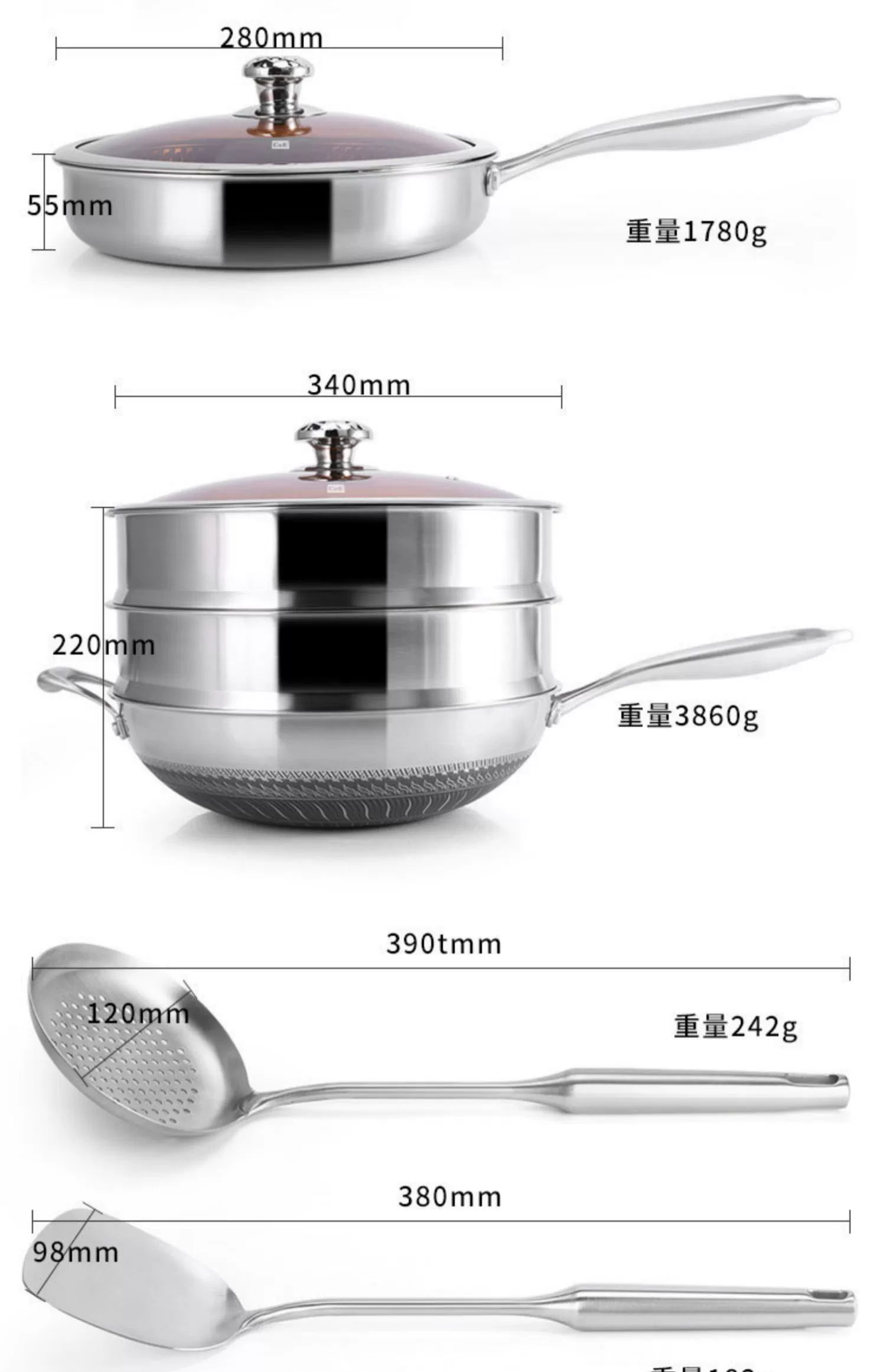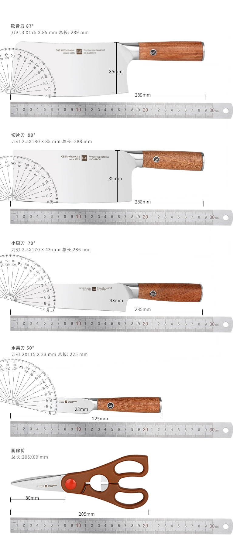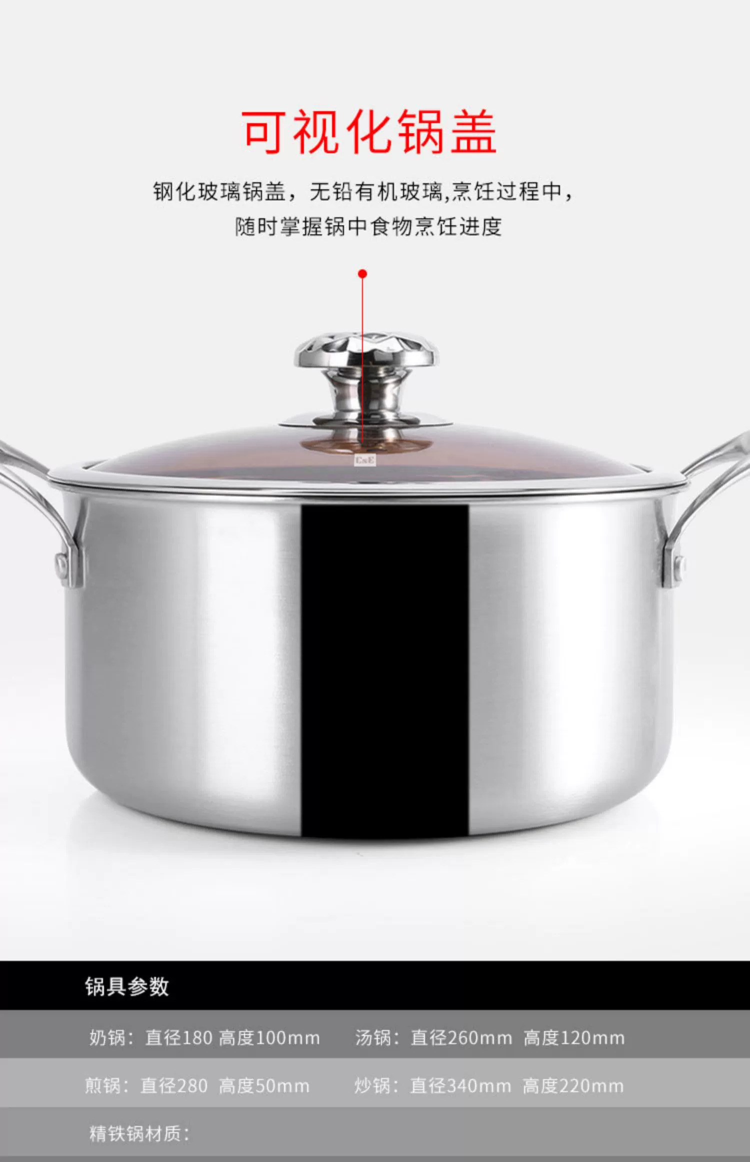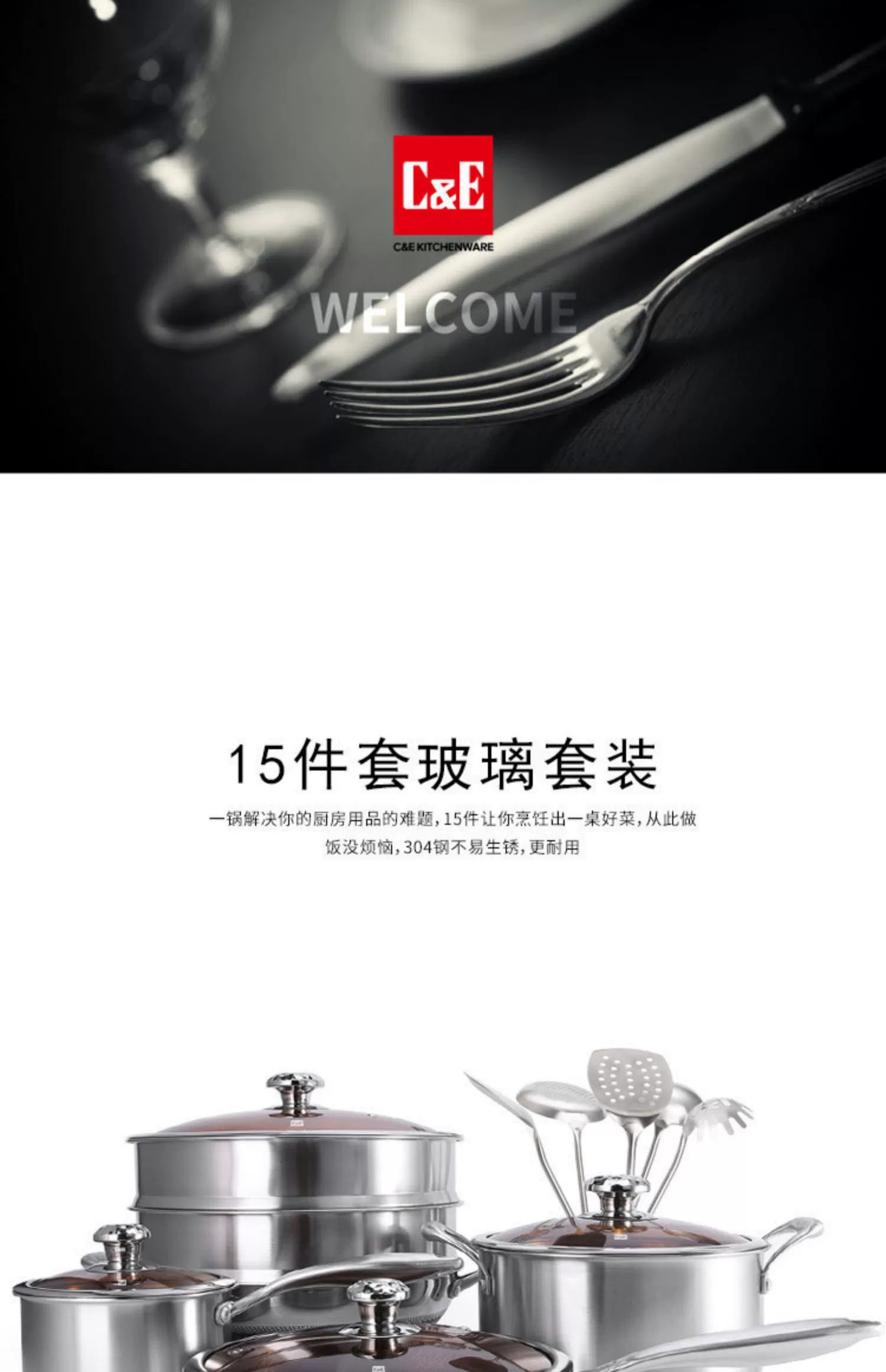 C&E创艺厨具304不锈钢锅具15件套炒锅煎锅奶锅汤锅烹饪铲汤勺套装/厨房刀具六件套商务礼品套装