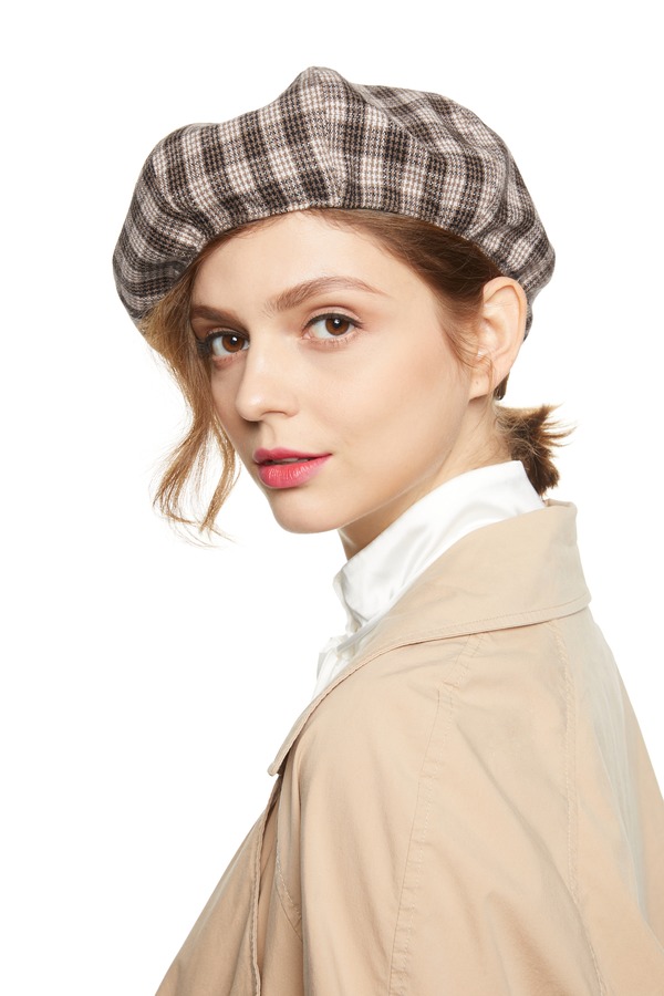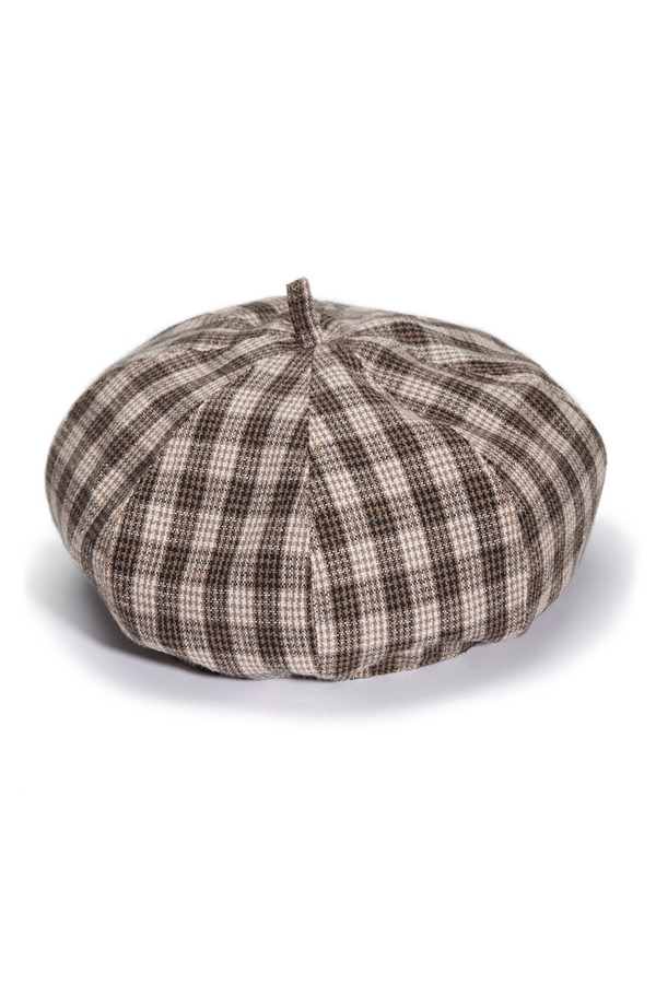 AVA 棕色格纹复古贝雷帽 7794