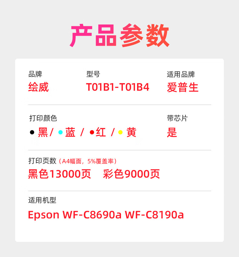 绘威T01B1黑色墨盒 适用爱普生Epson WF-C8690a WF-C8190a打印机墨盒墨水