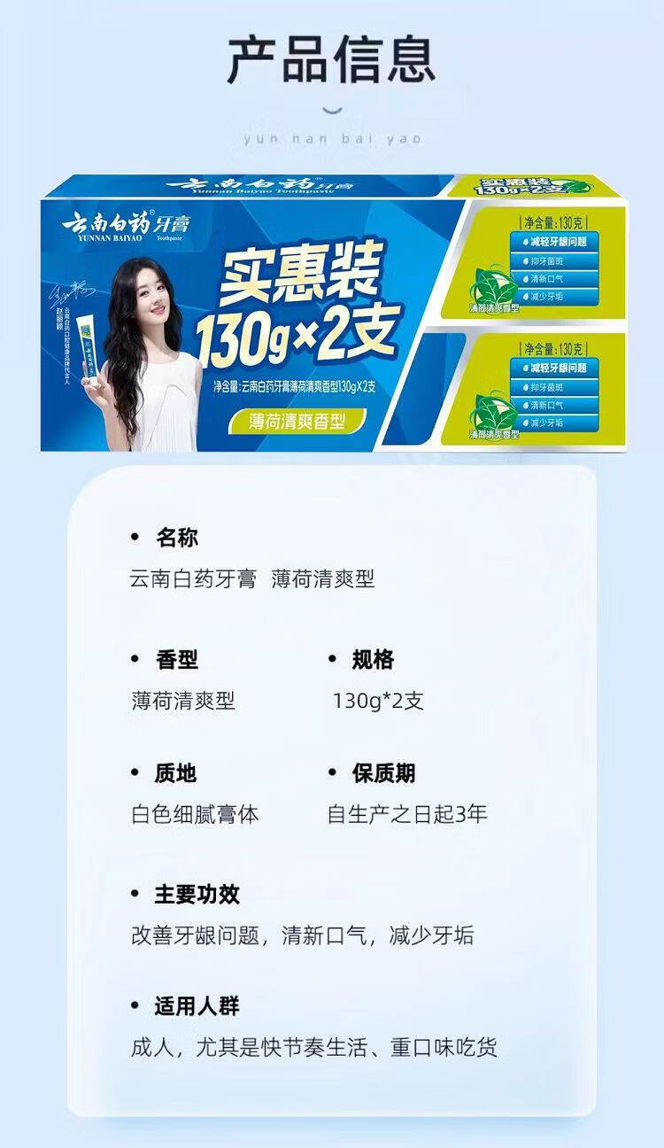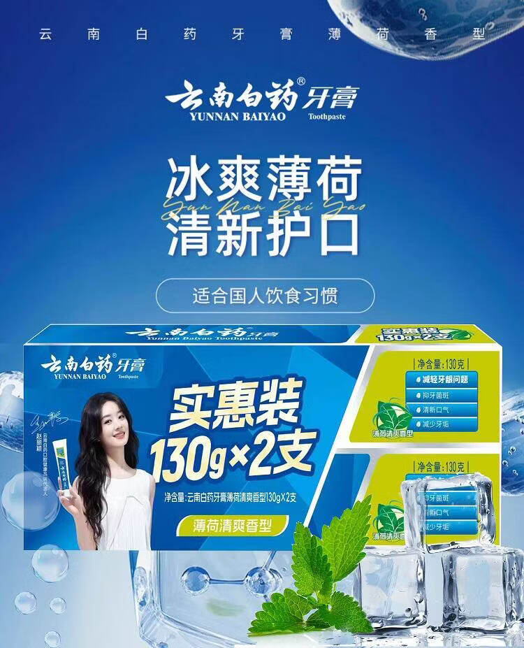 云南白药牙膏薄荷香130g*2