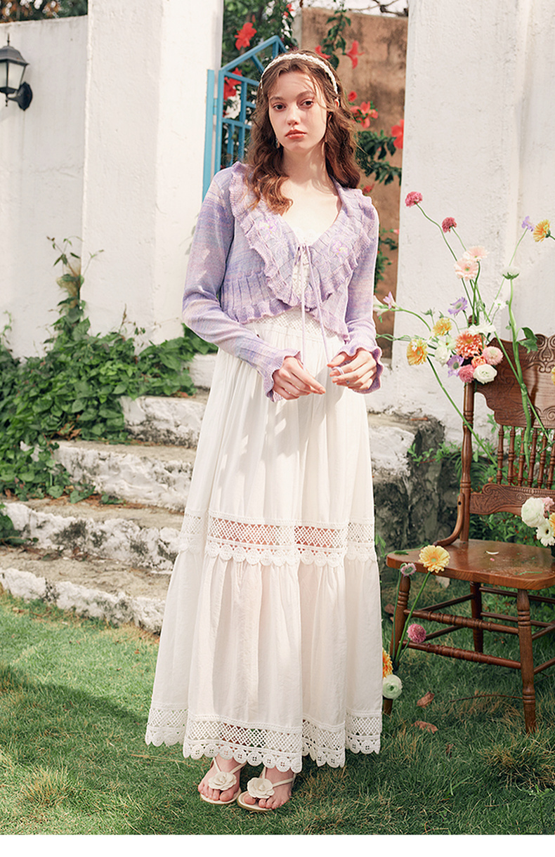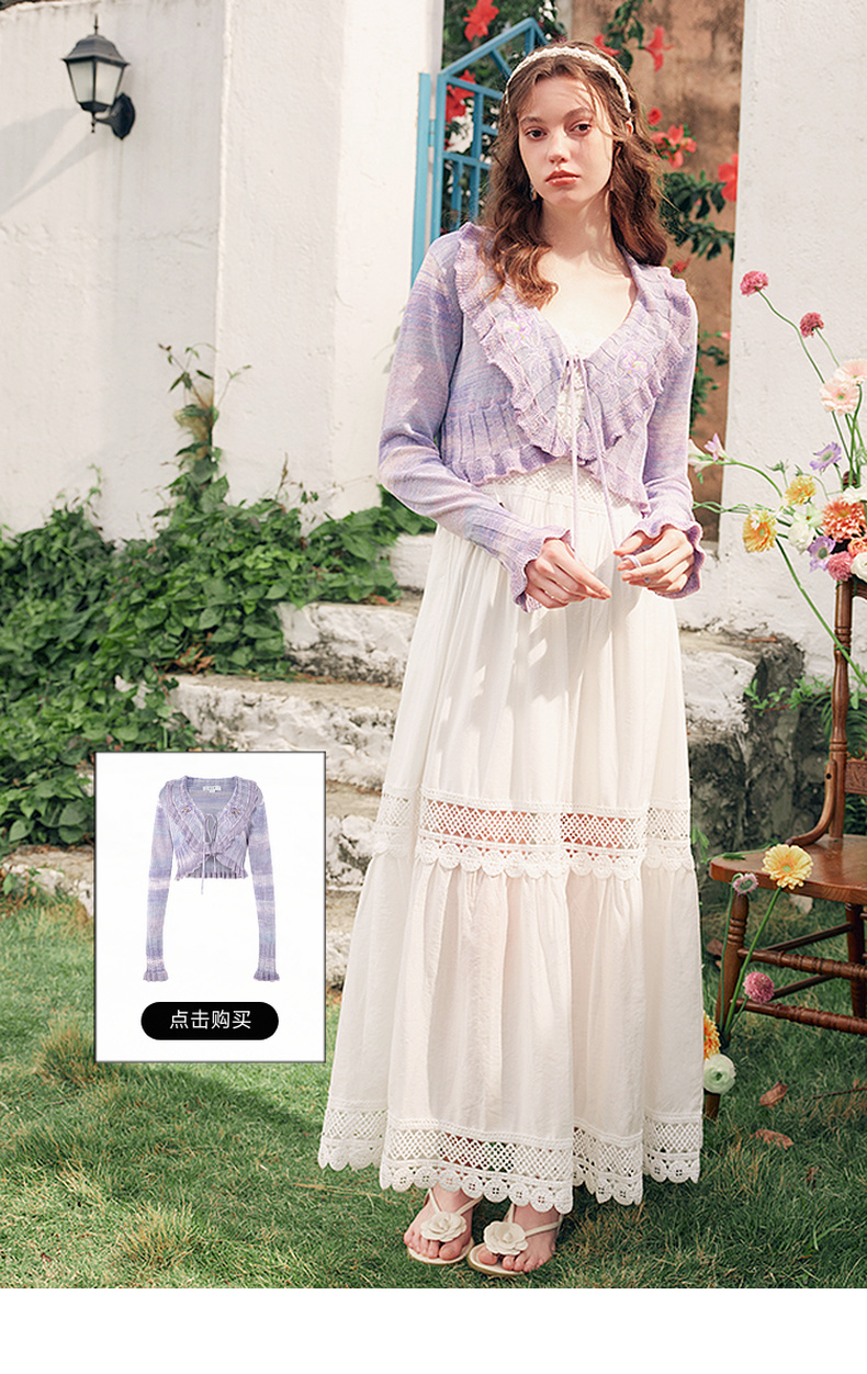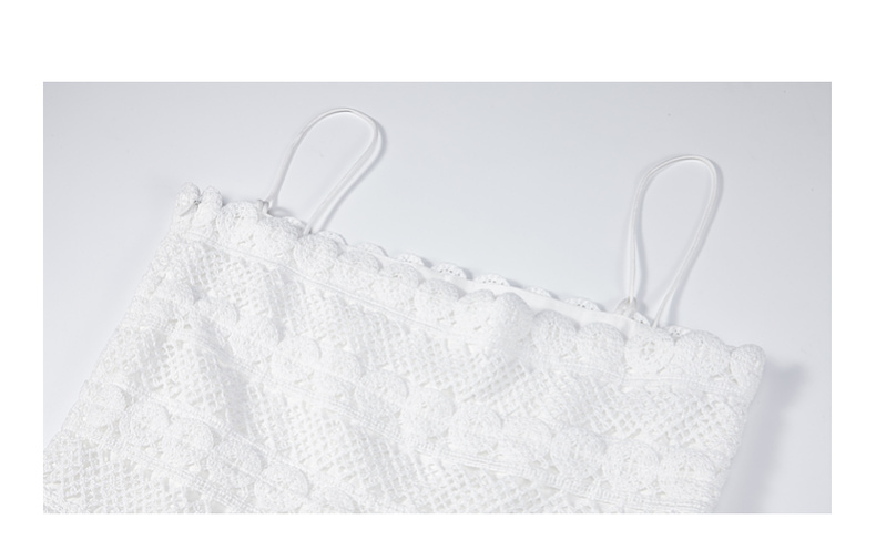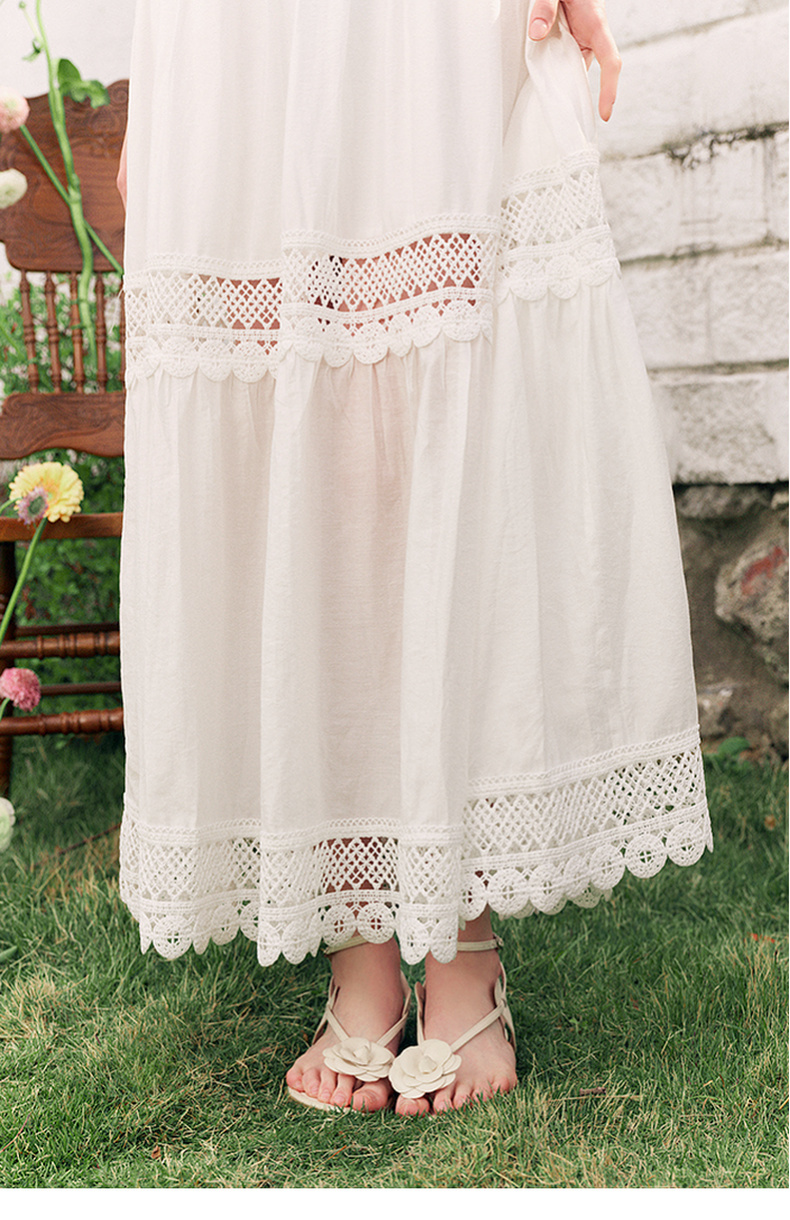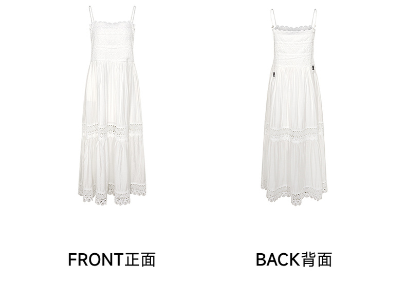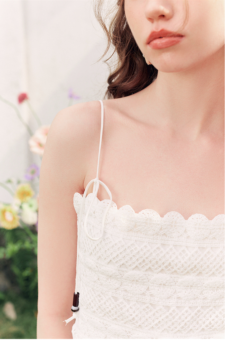 两三事缱绻白梨2025夏季新款度假风镂空勾花拼接白色吊带裙连衣裙