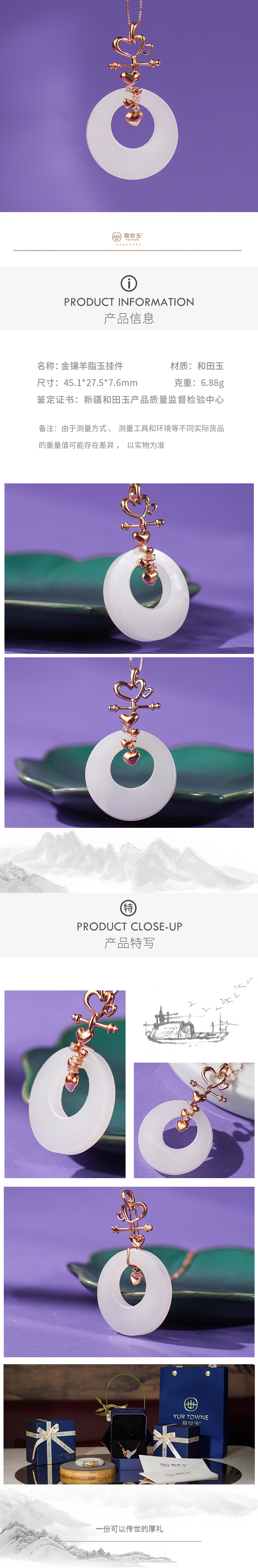 新疆国玉盟世玉金镶羊脂玉挂件【带证书·顺丰物流】