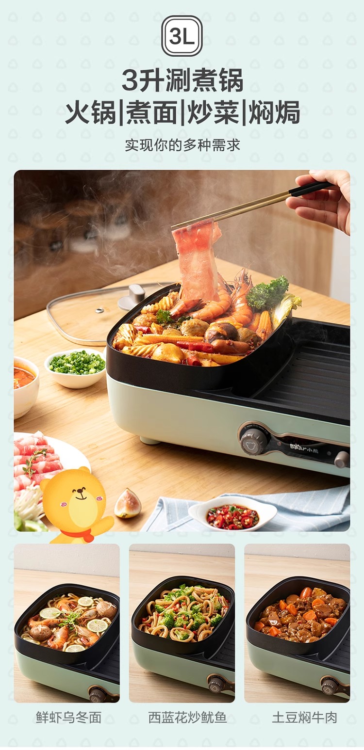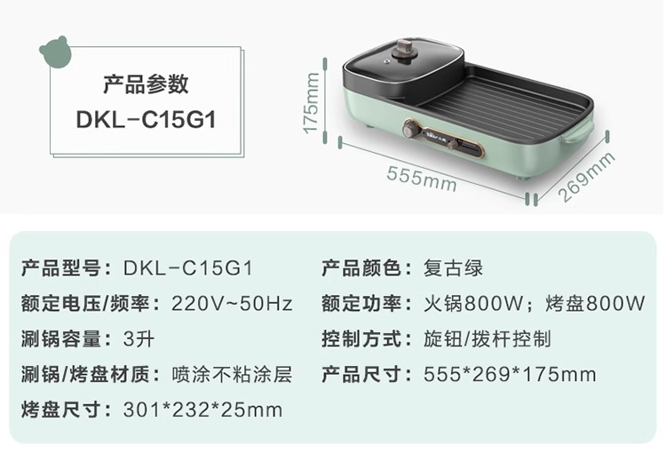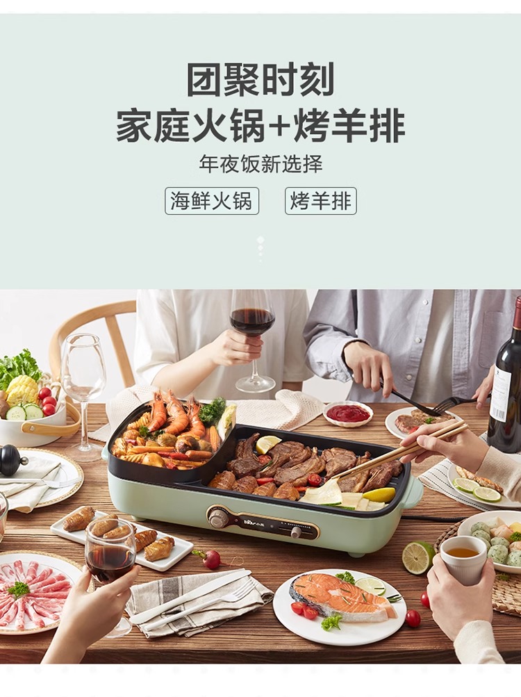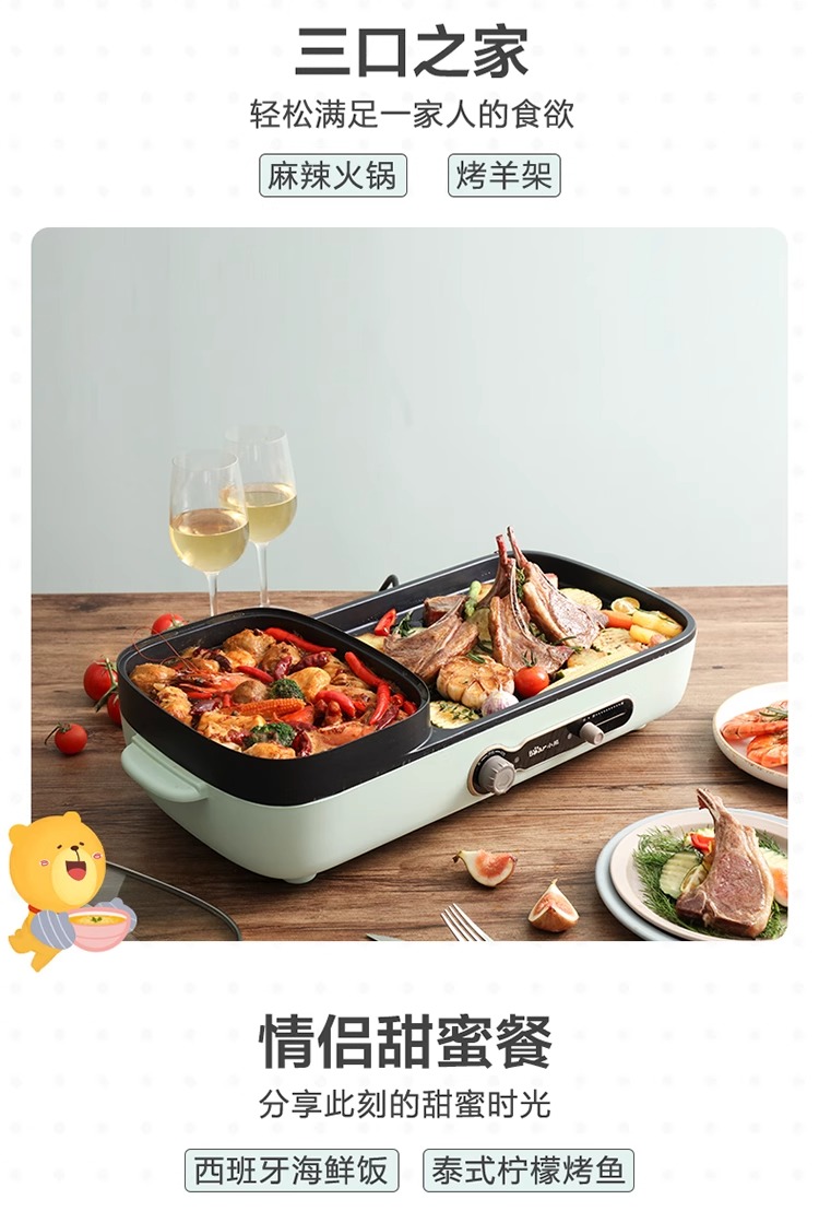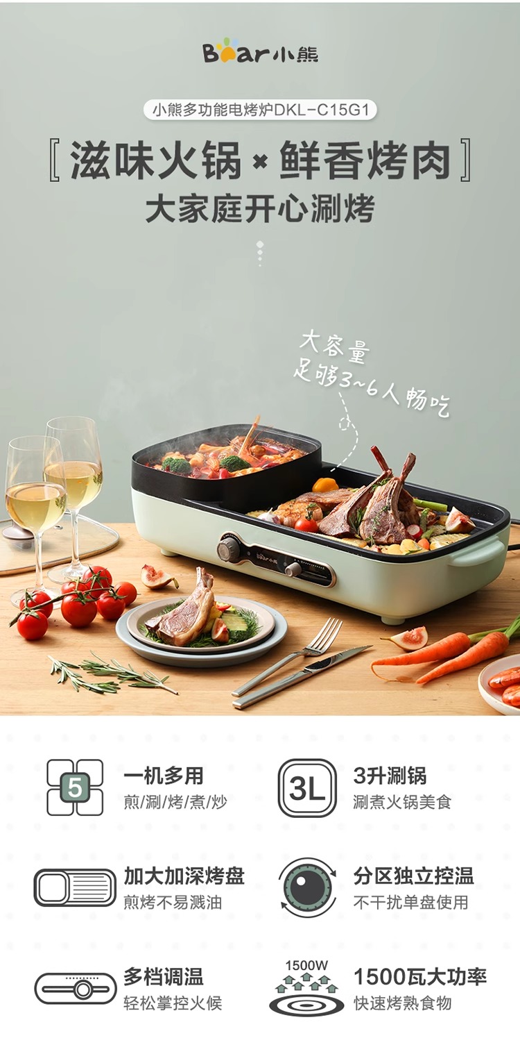Bear/小熊 DKL-C15G1烧烤炉家用电烤锅无烟多功能烧烤火锅一体锅