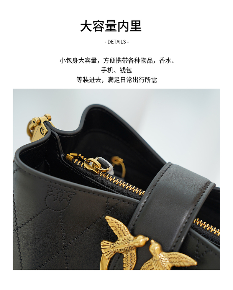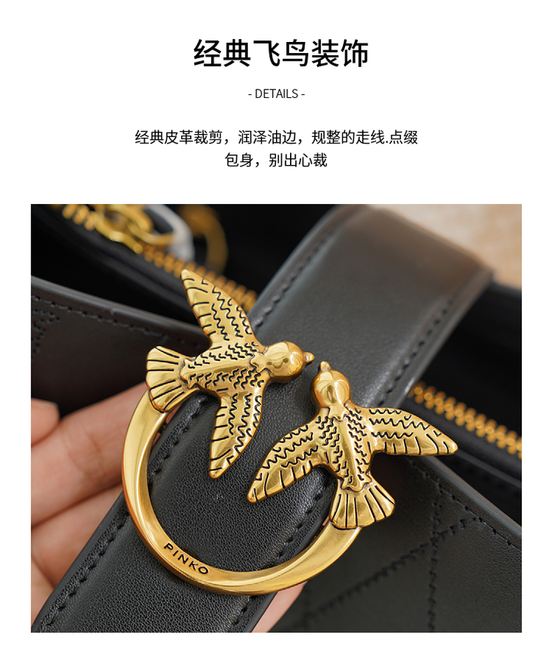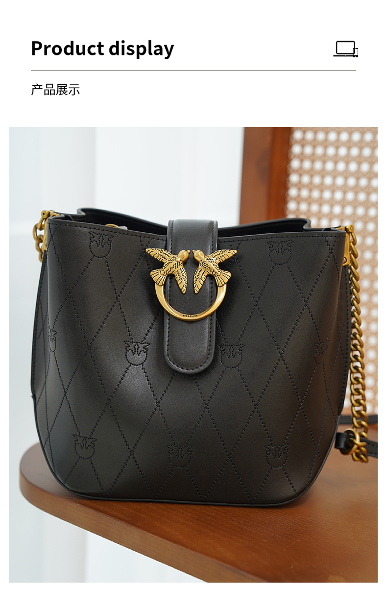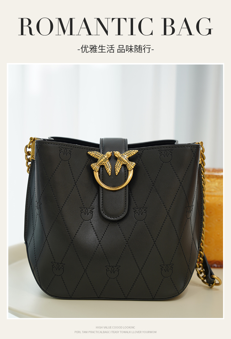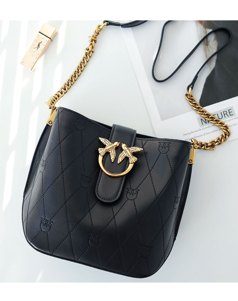 PINKO女士包袋菱格纹方链时尚皮革飞鸟燕子包水桶包1P22L3 Y81J 【G】