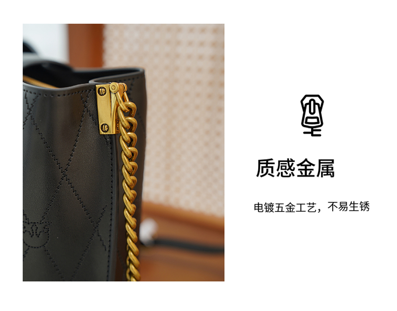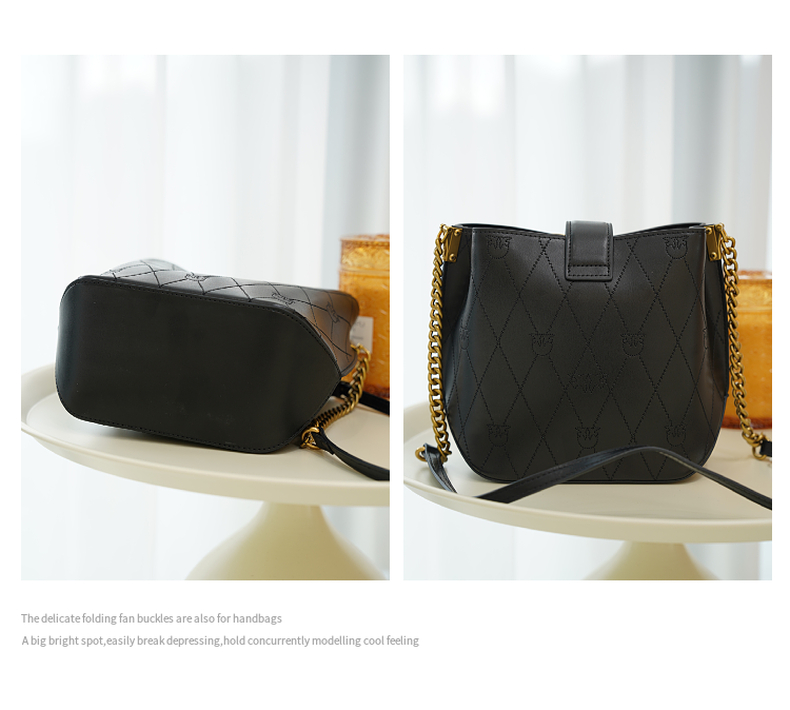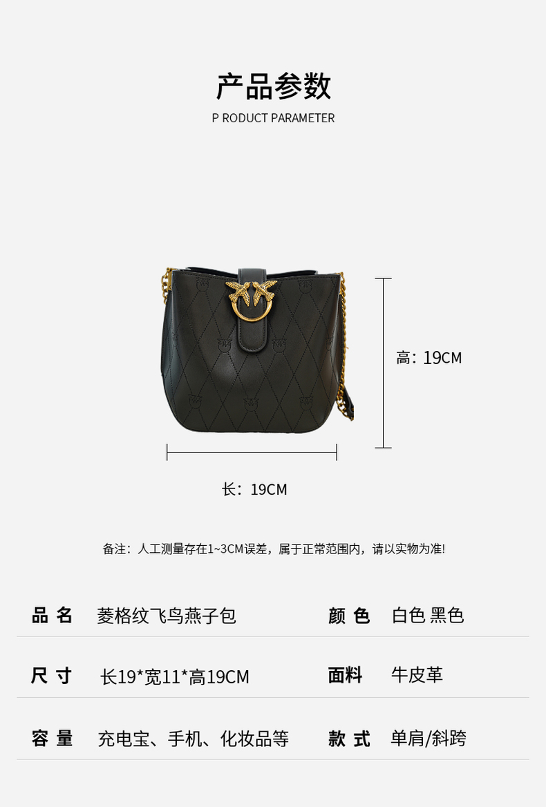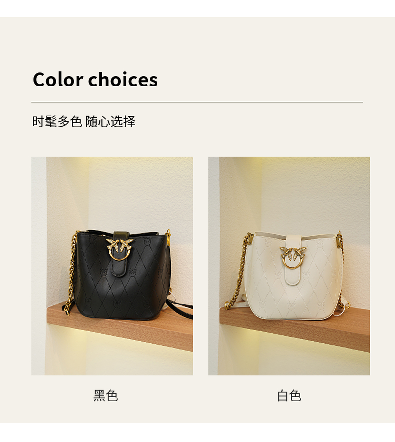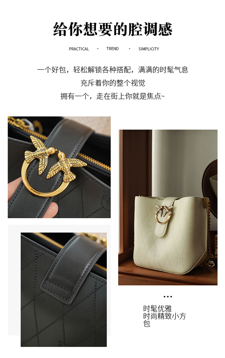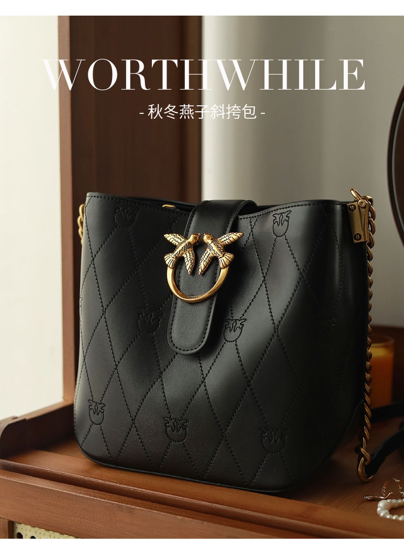 PINKO女士包袋菱格纹方链时尚皮革飞鸟燕子包水桶包1P22L3 Y81J 【G】