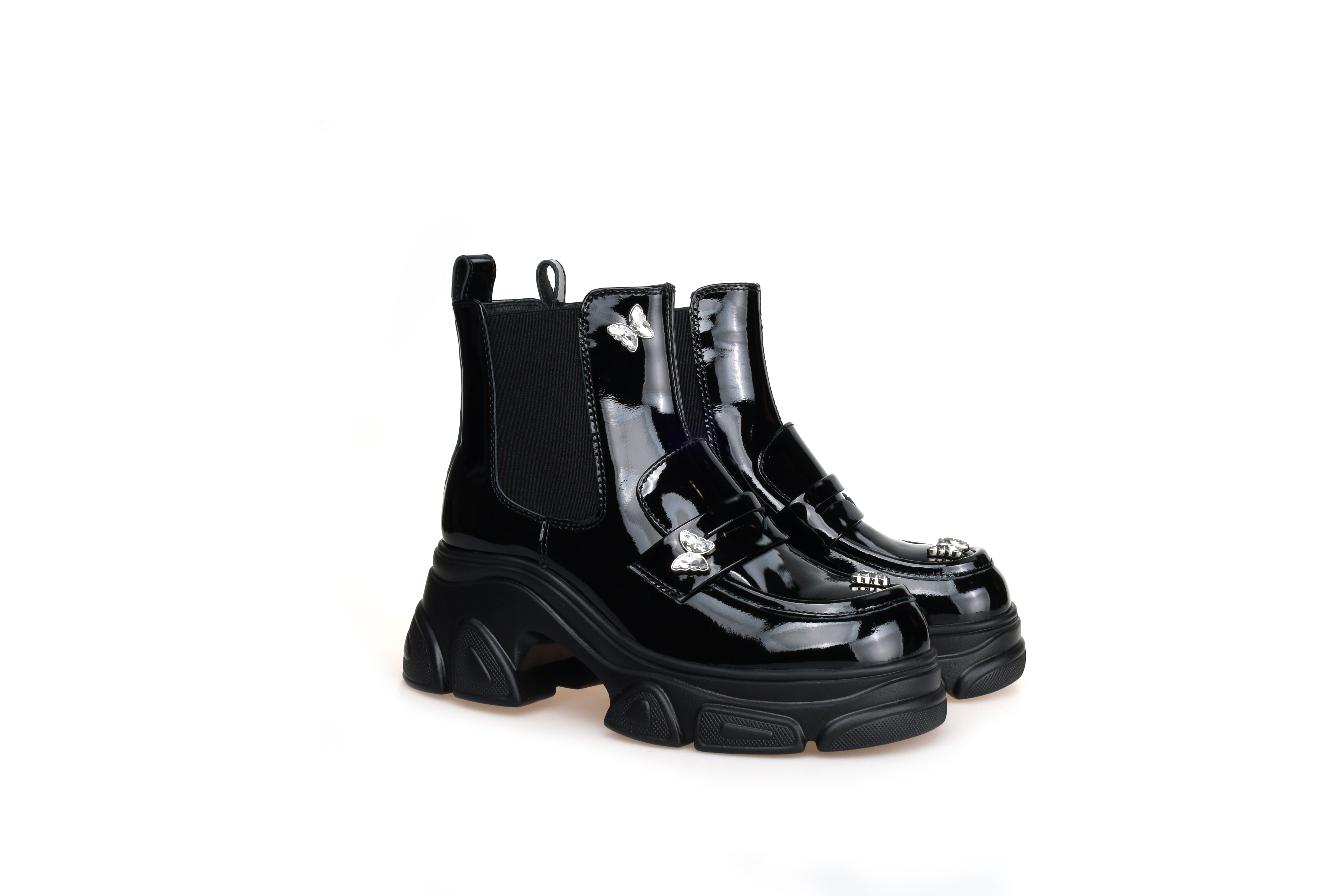 豪麟名鞋奥莱迪嘉女鞋短靴牛移膜革DJHJA42WN019黑色 原价1960元