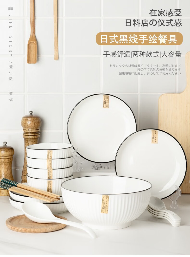 「16件套!数套可选」碗碟套装 四人食陶瓷餐饮用具碗筷套装微波炉烤箱适用