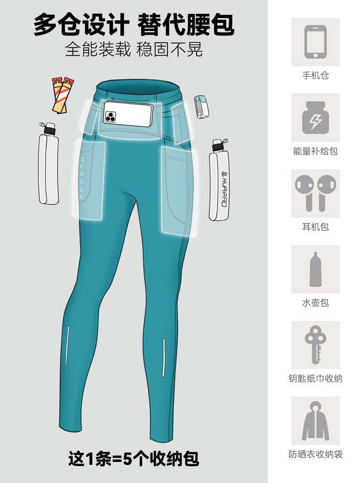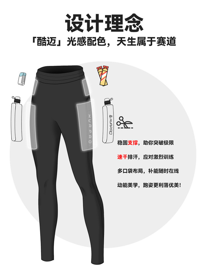 HUAPAO画跑「Chroma酷迈系列」越野马拉松运动紧身压缩长裤