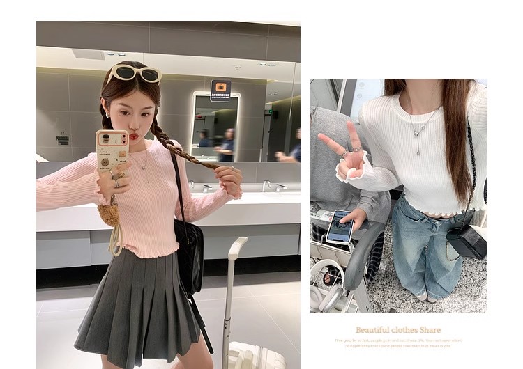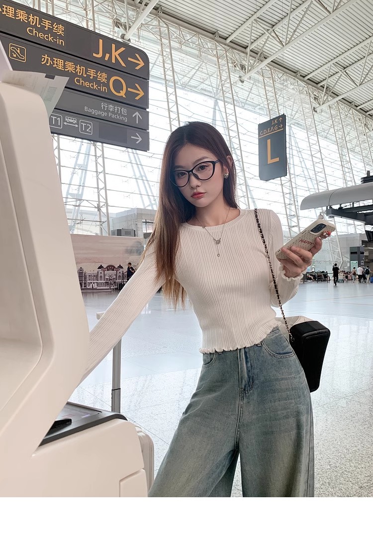 【110元任选2件】最后一波现货!木耳边修身打底衫