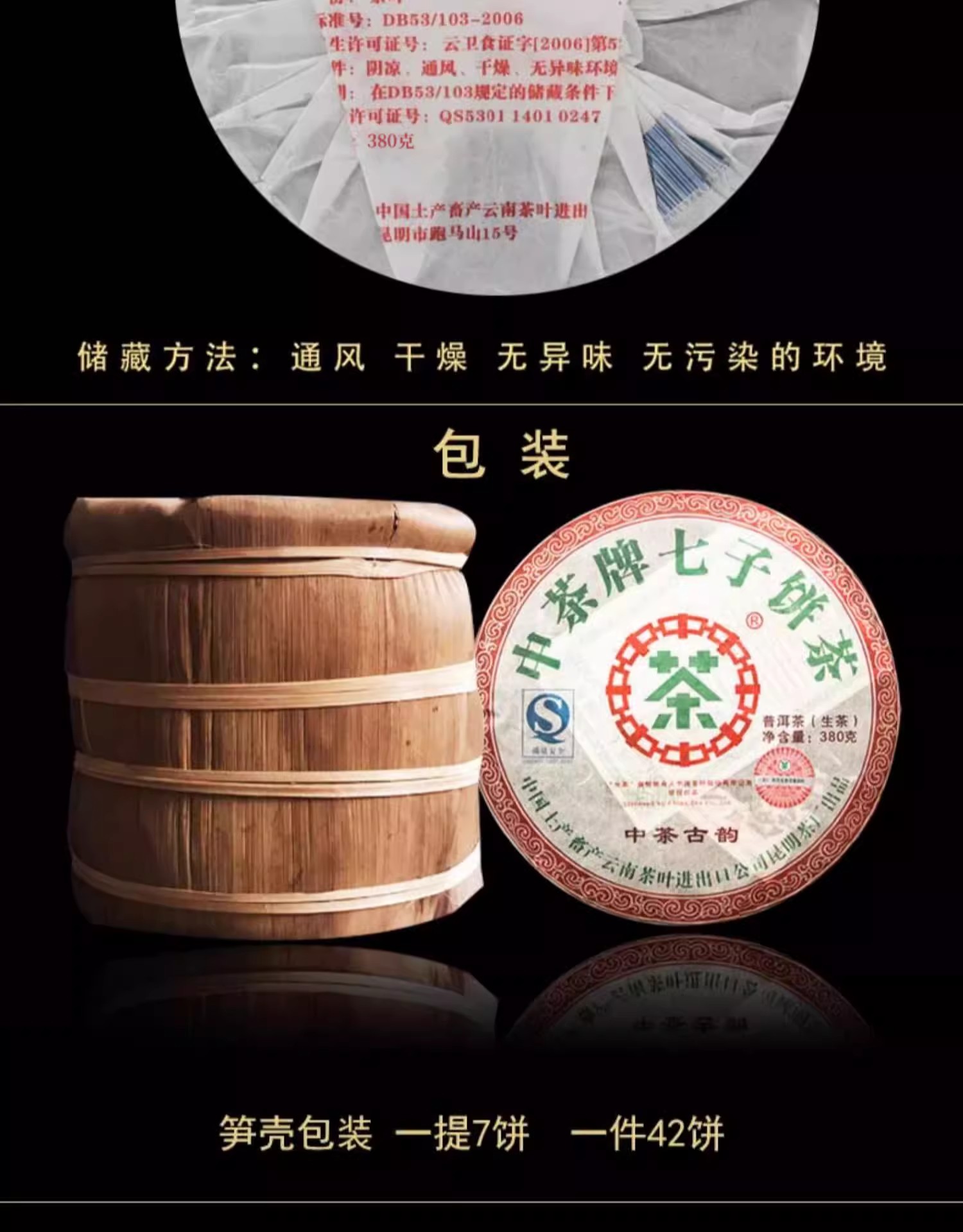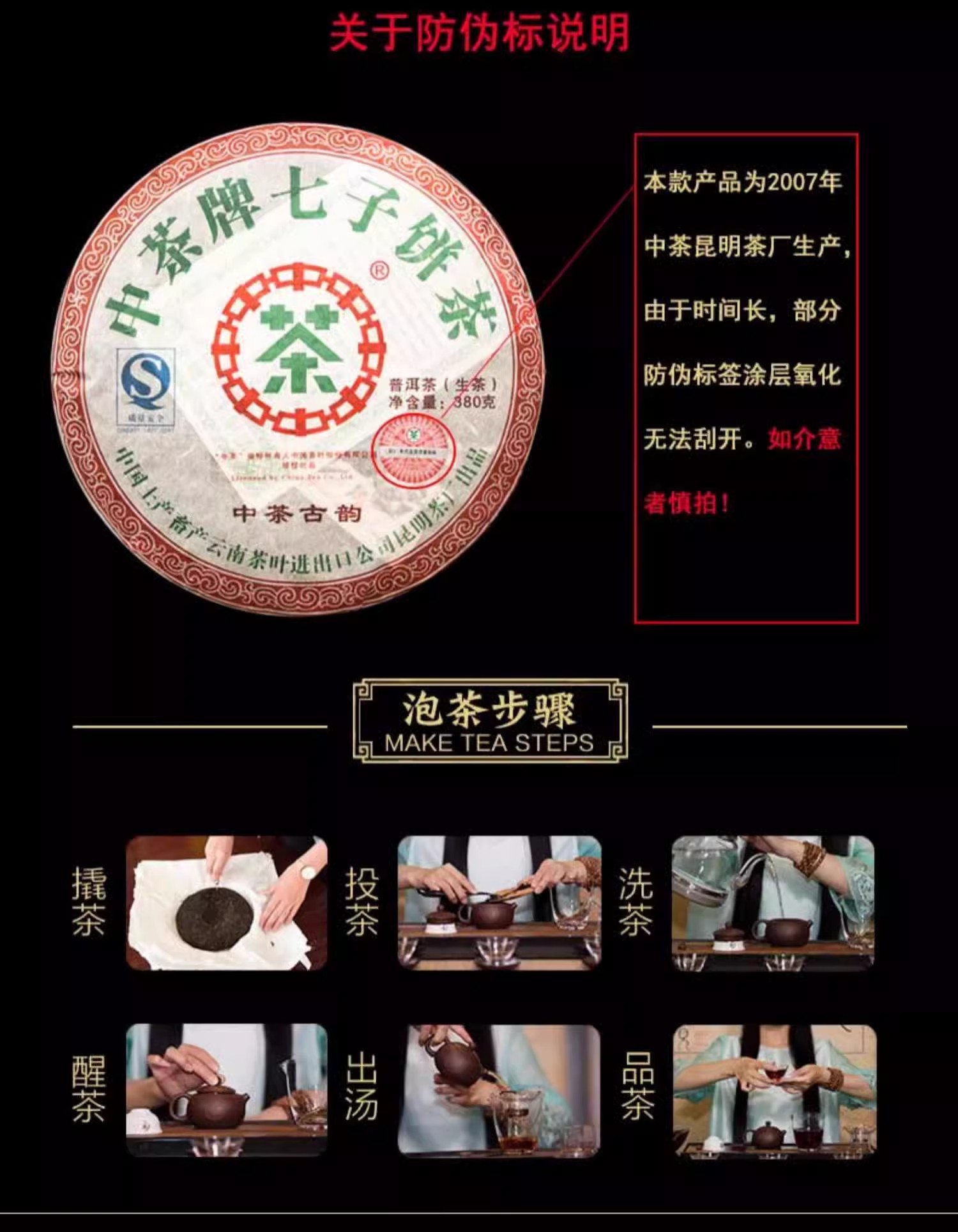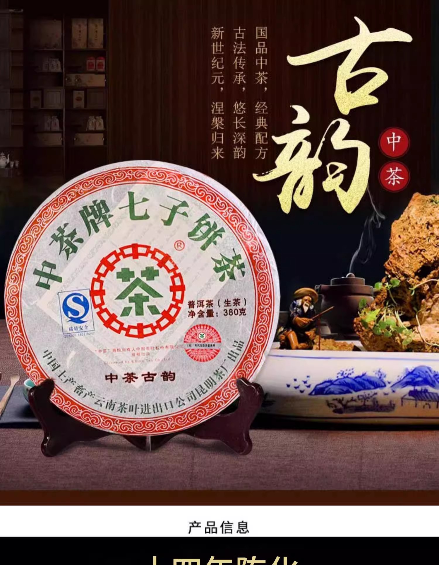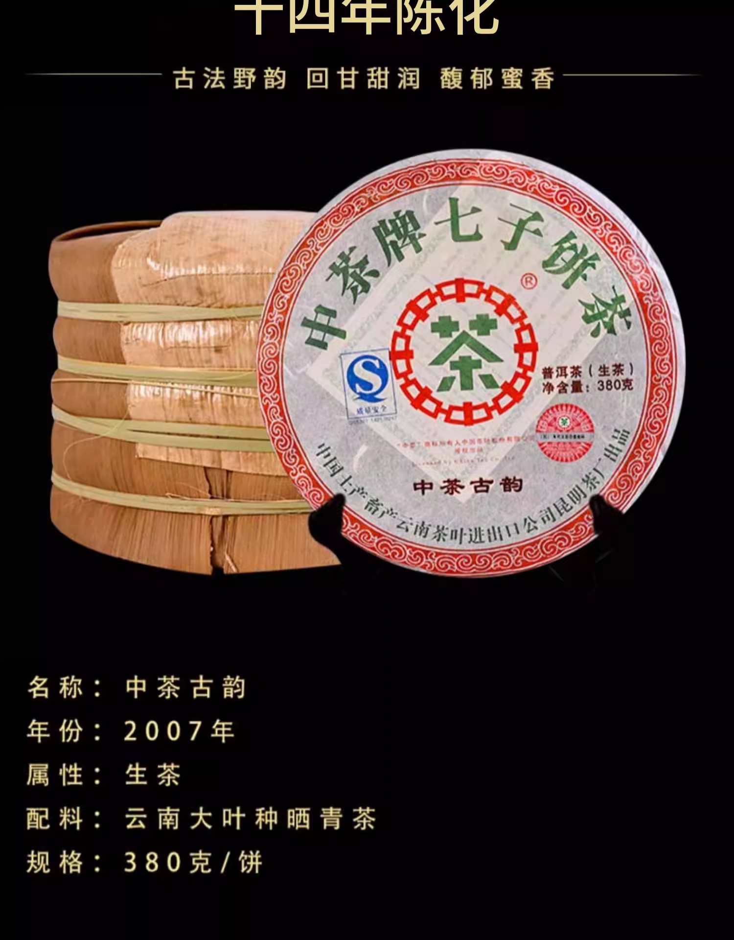 中粮-中茶 2007年中茶古韵十四年陈化普洱茶生茶380g/饼 /云南干仓直发