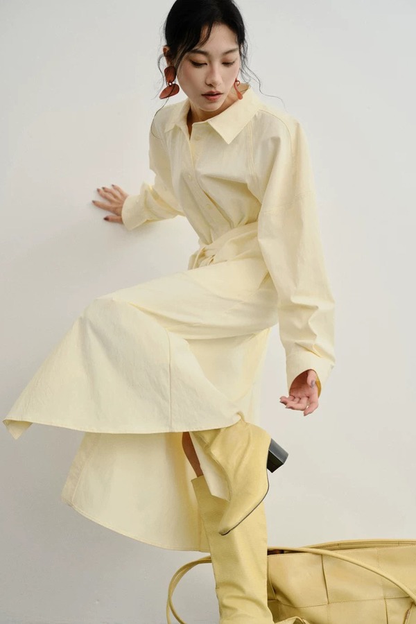 Kai & Kiera 杏色简约设计感衬衫连衣裙 21276